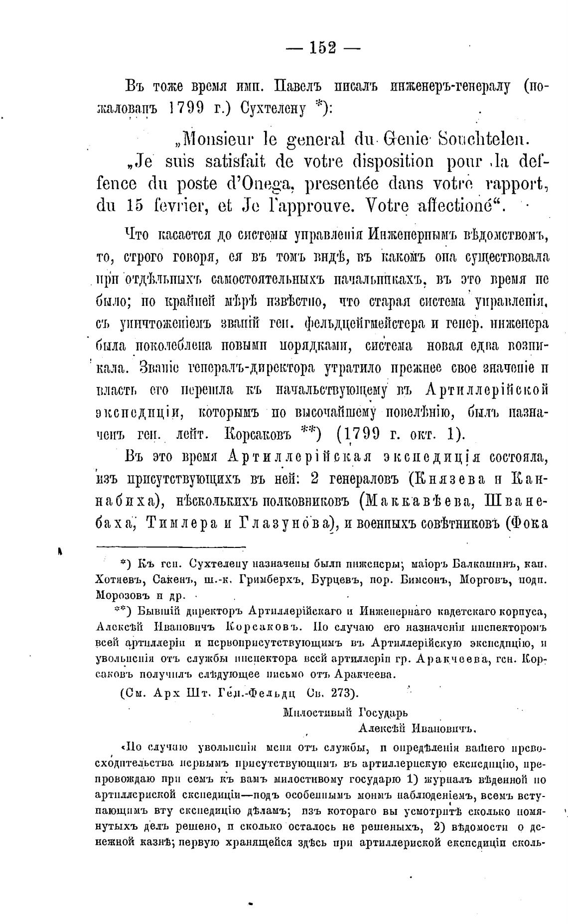 YBO.'lbllC11i}l отъ службы ппсџектора всей артиллерЈп гр. Аракчеева, ген. Кор: