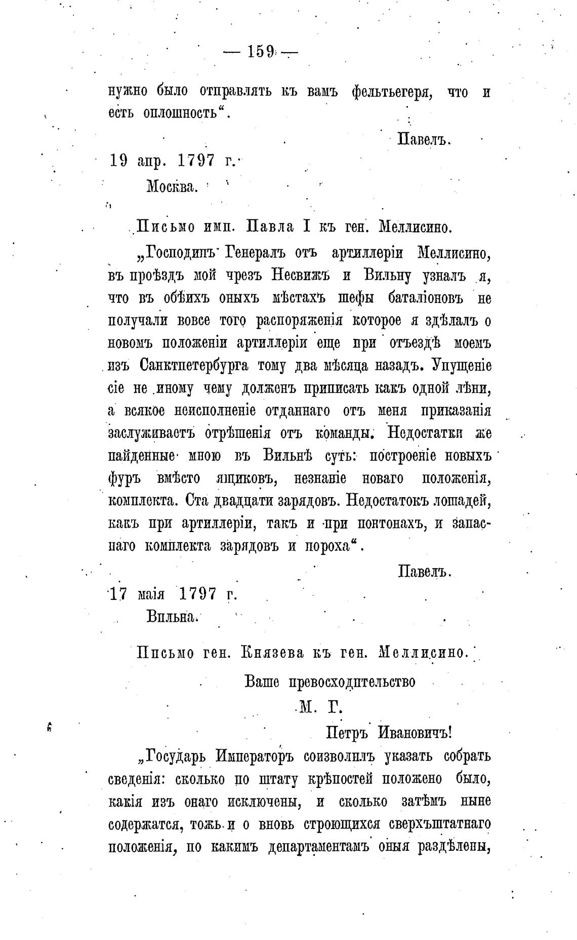 Письмо имп. Павла кь ген. Меллисино.