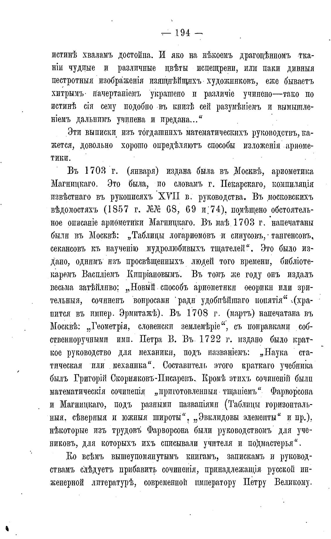 ное арифметики Магницкаго, Въ магђ 1703 г. напечатаны