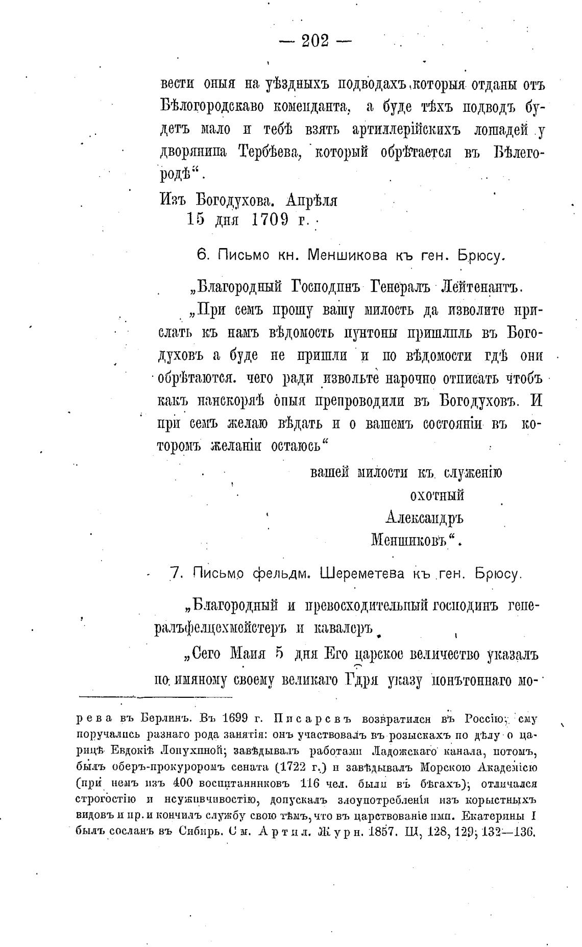 7. Письмо фельдм. Шереметева кь ген. Брюсу.