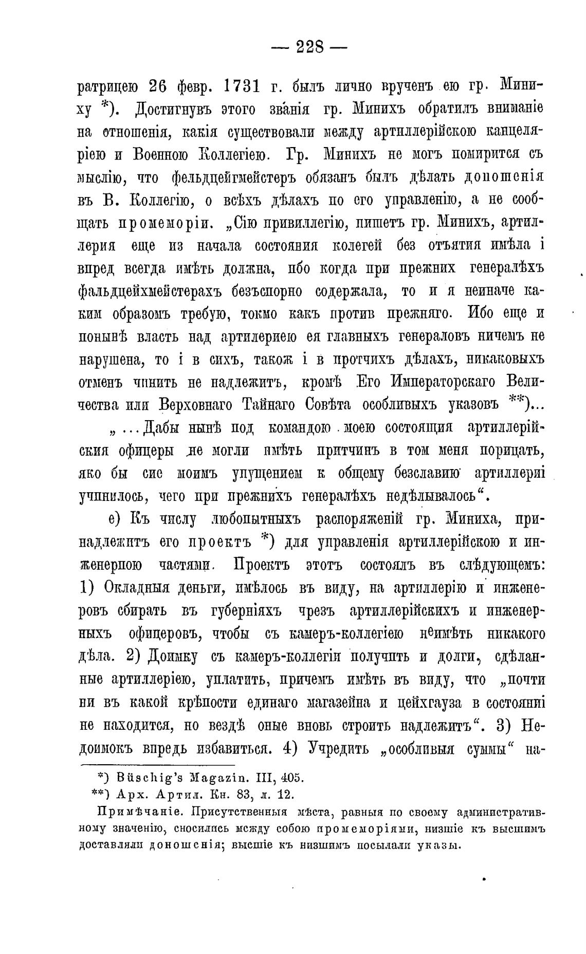 щать пишетъ гр. Минихъ, артил-