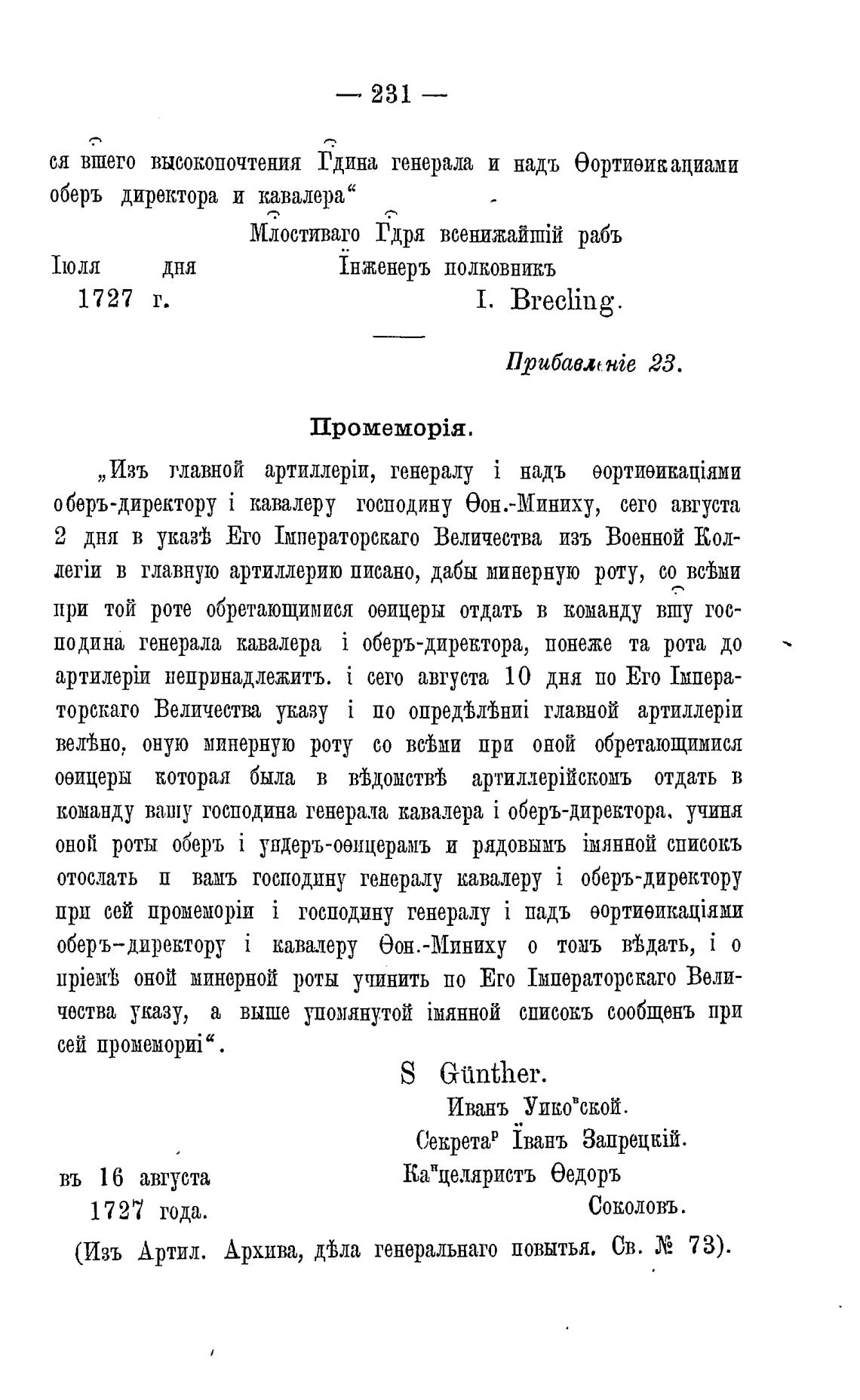 дола генеральнаго повытья. Св. ЛЕ 73).