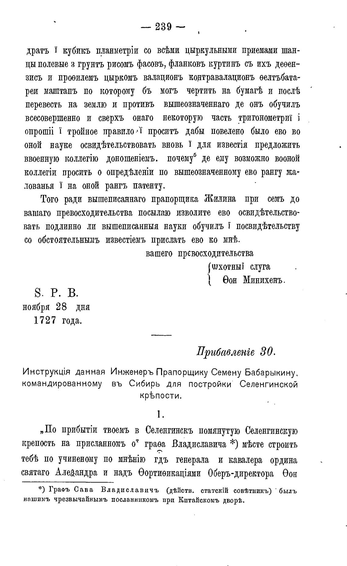 данная Инженеръ Прапорщику Семену Бабарыкину,