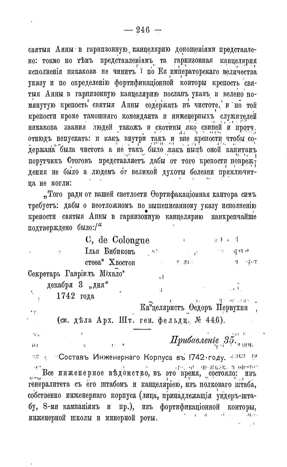 Составь Инженернаго Корпуса въ• 1742 соду.