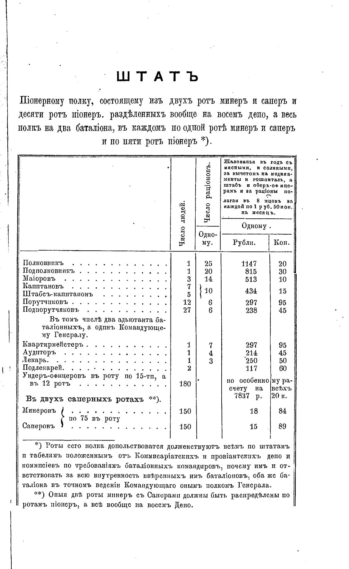 * ) Роты сего полка доподьствоватся долженствуютъ вст;мт, по штатамъ