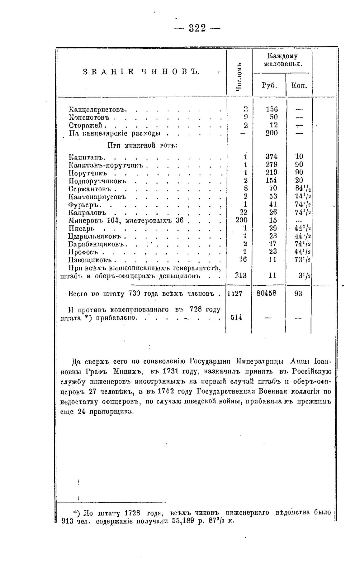 * ) По штату 1728 тода, вевхъ чиновъ пвженернаго в•ћдошства было