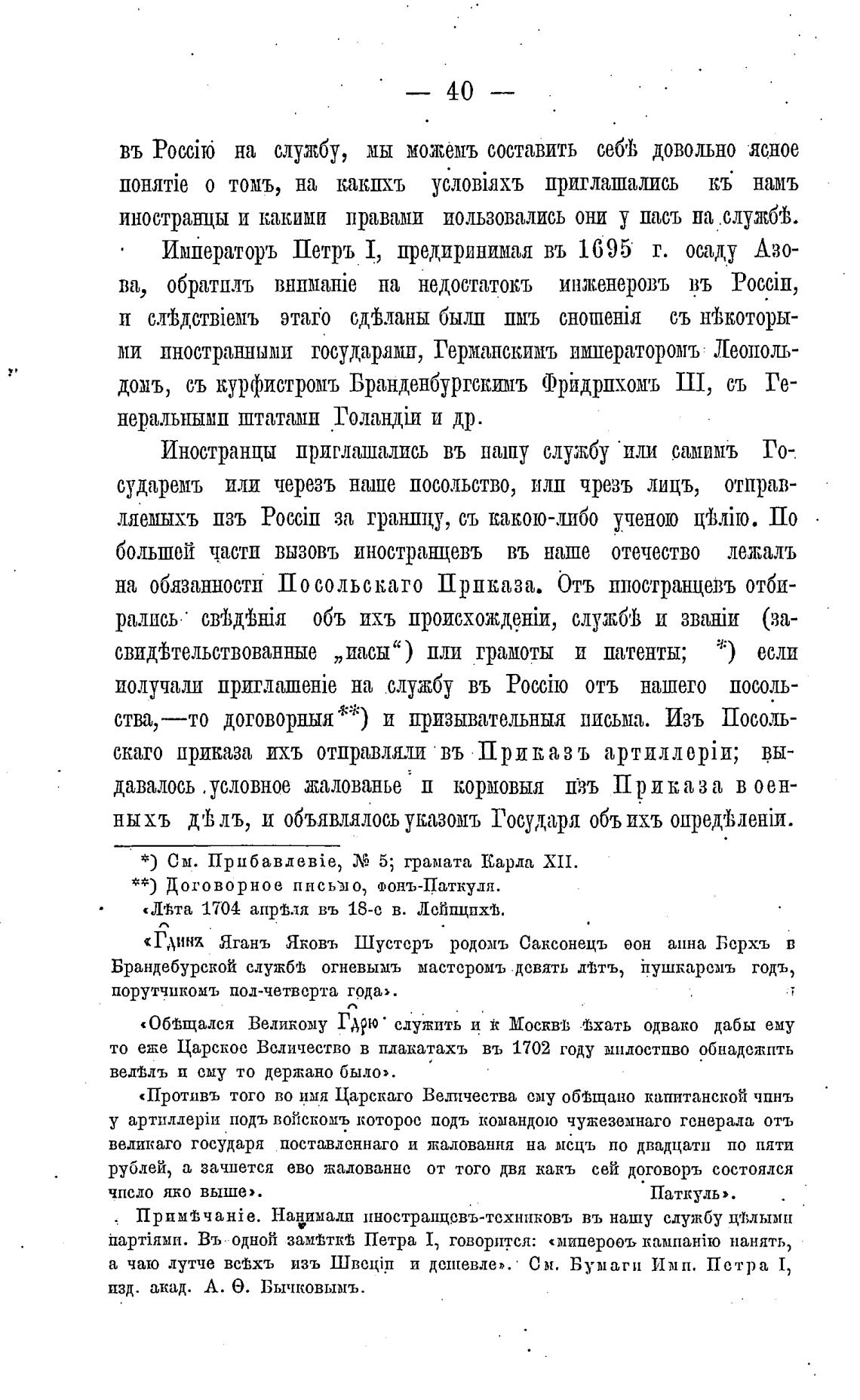 Иностранцы приглашались въ нашу службу •или самимъ Го-