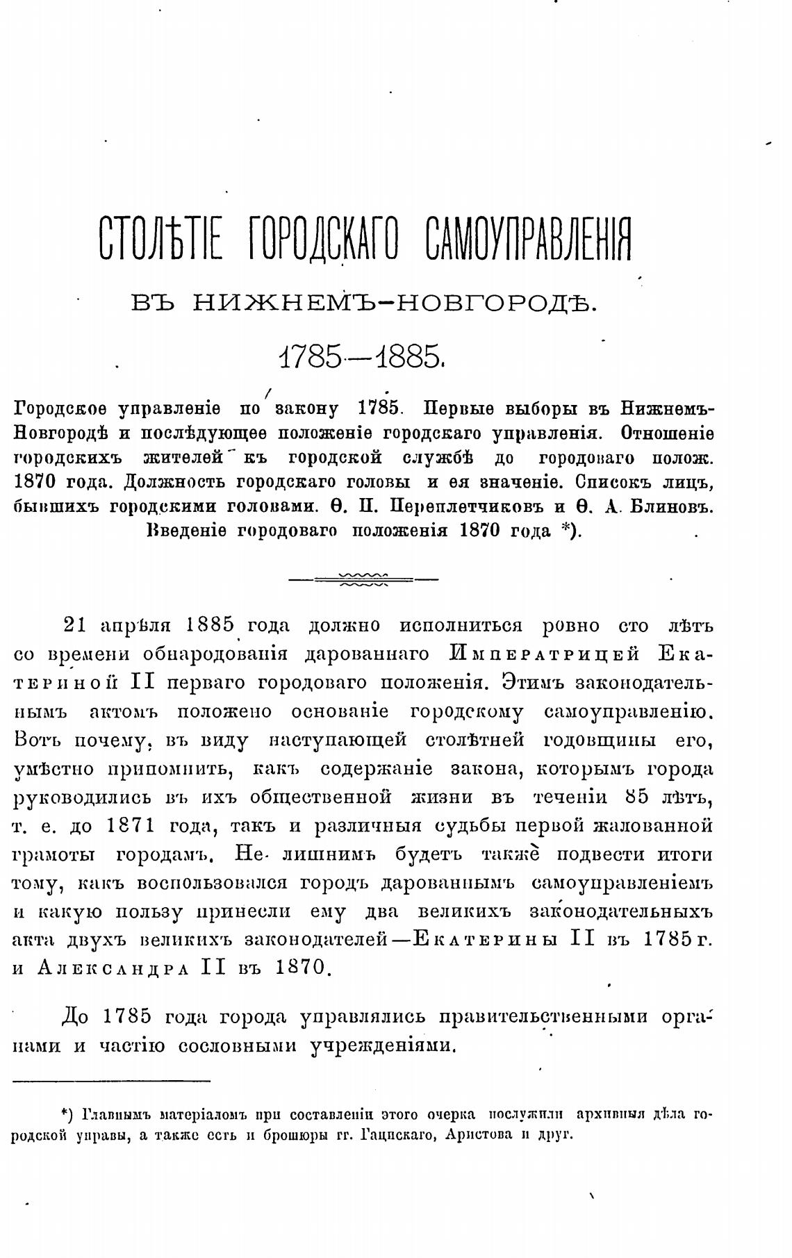 Городское по закону 1785. Первые выборы въ Нижнемъ-