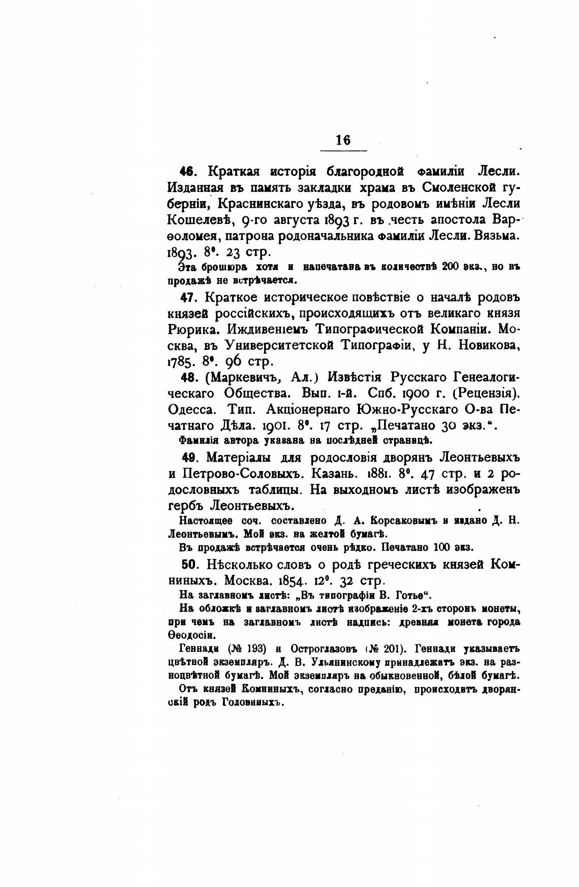 50. Н%сколько словъ о родћ греческихъ князей Ком-