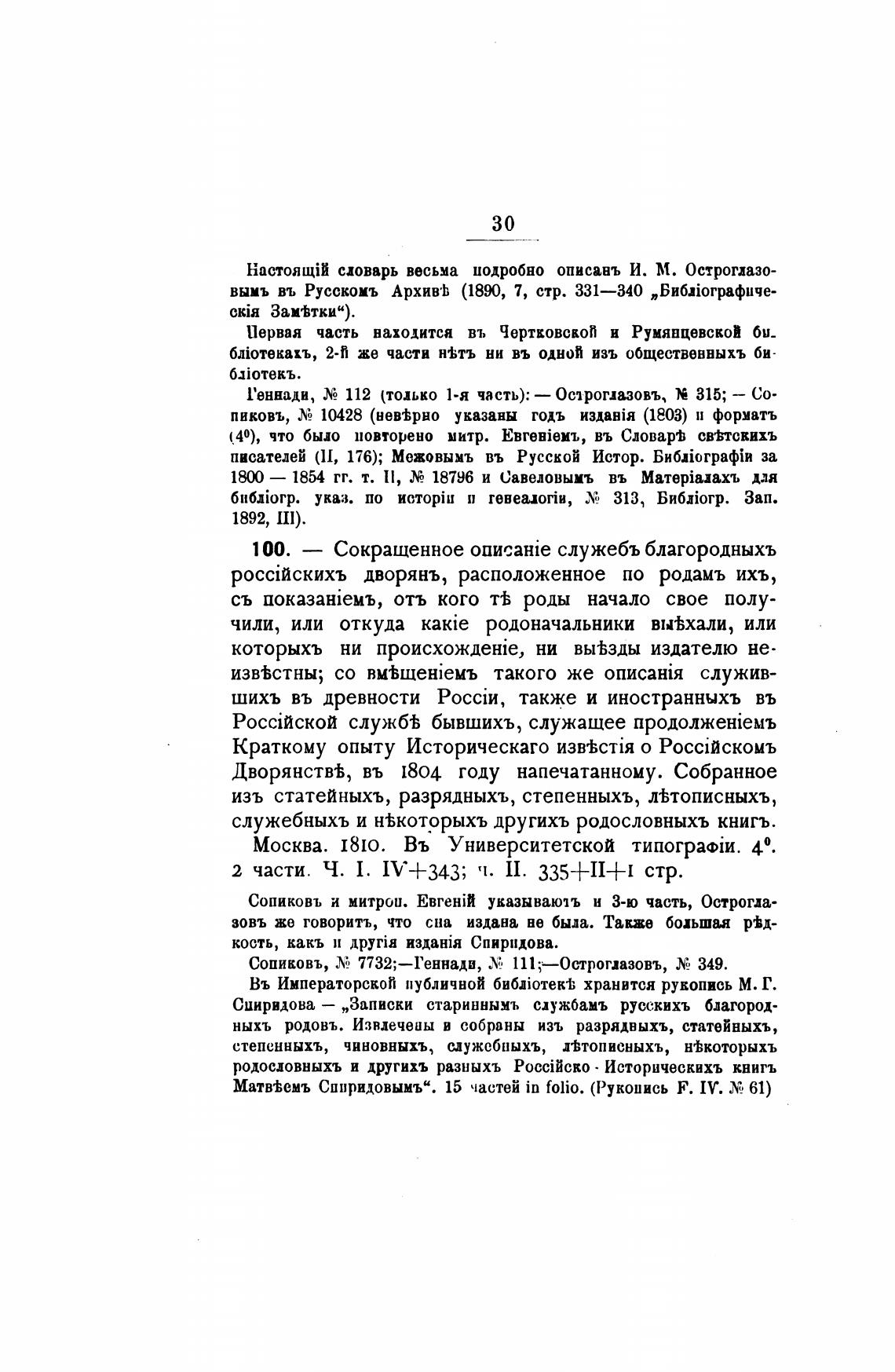 100. — Сокращенное служебъ благородныхъ