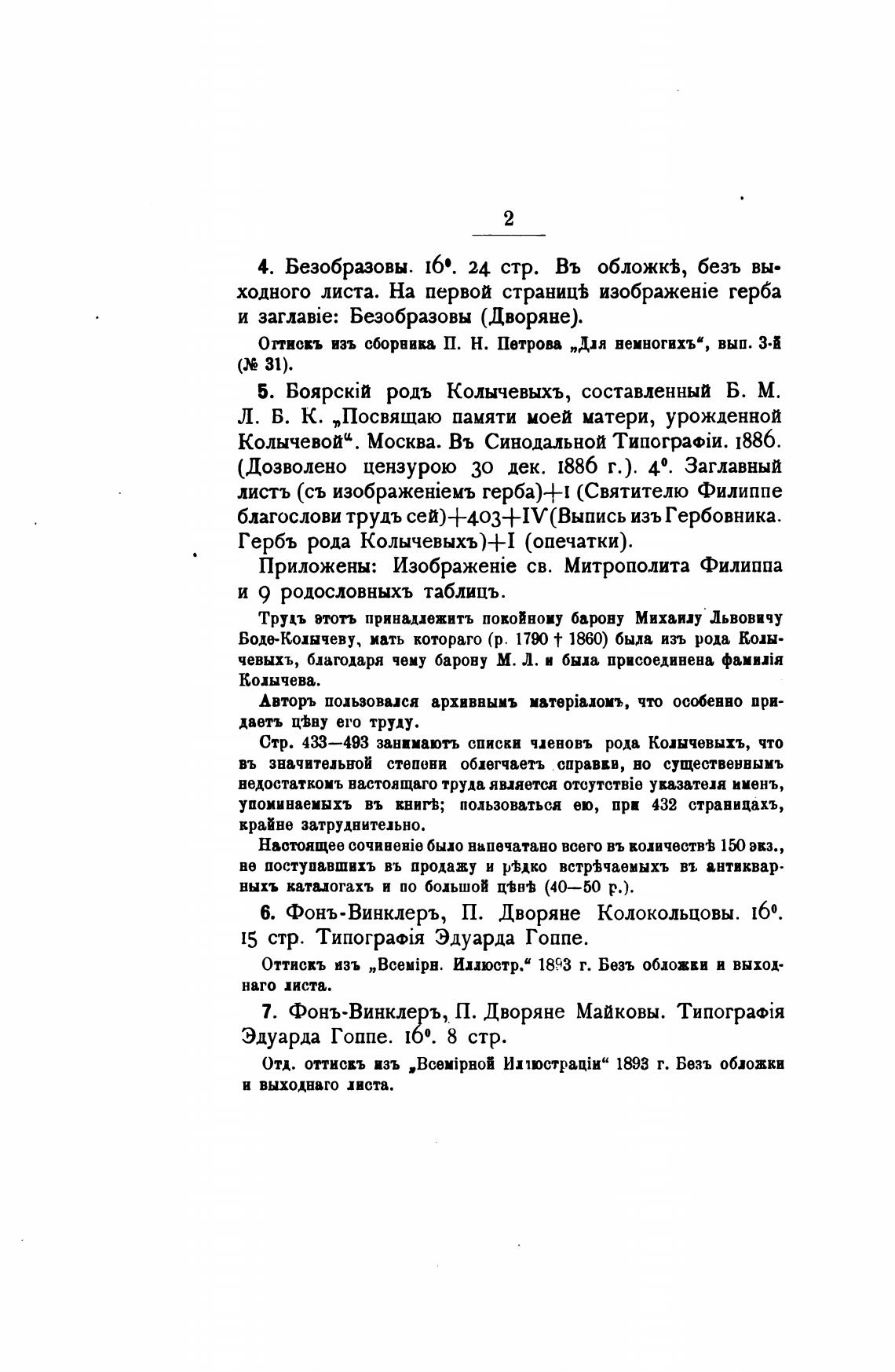7. Фонъ-Винклеръ, П. Дворяне Майковы. ТипограЫя