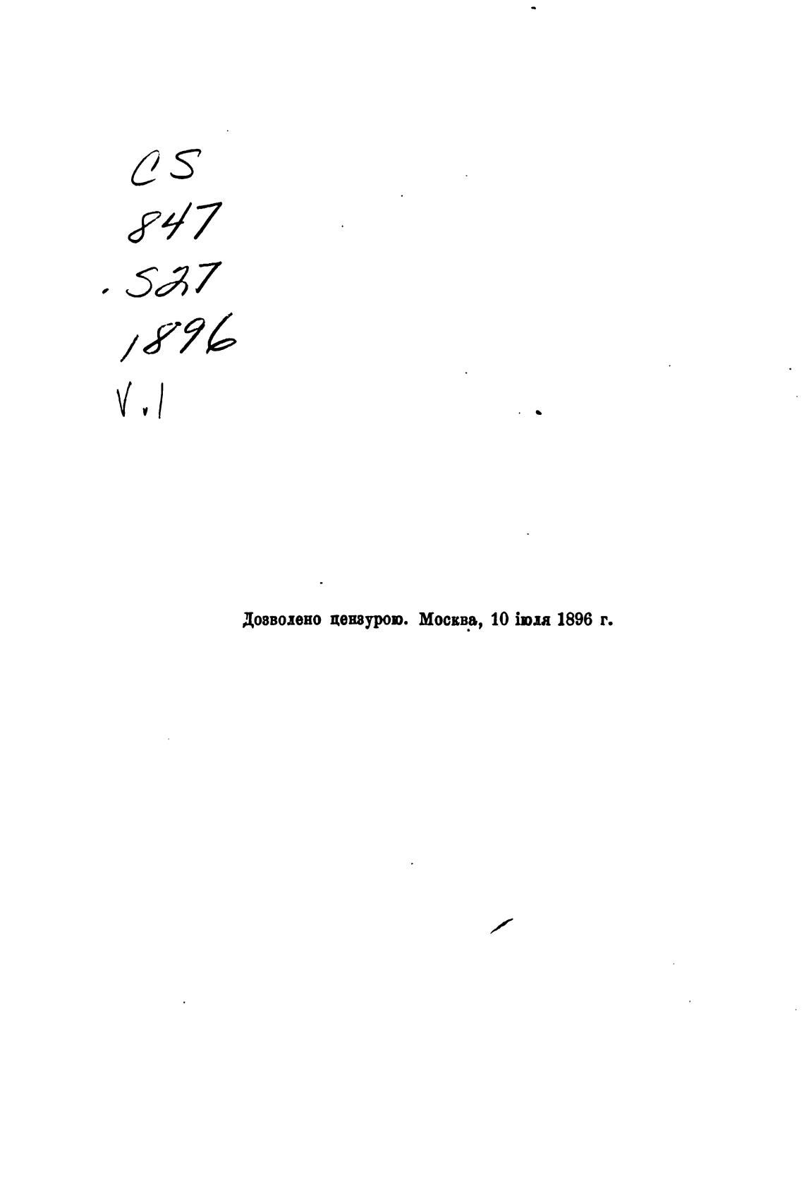 Дозволено цензурю. Москва, 10 ima 1896 г.