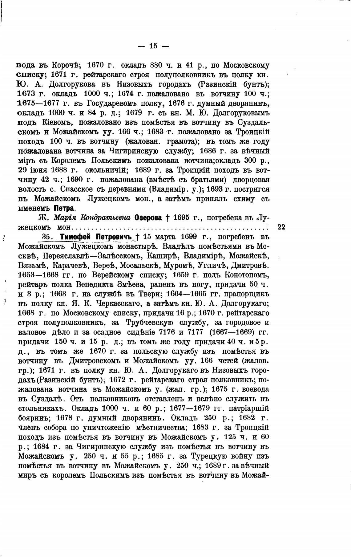 35. Тимофей Петровичъ 15 марта 1699 г., погребень въ