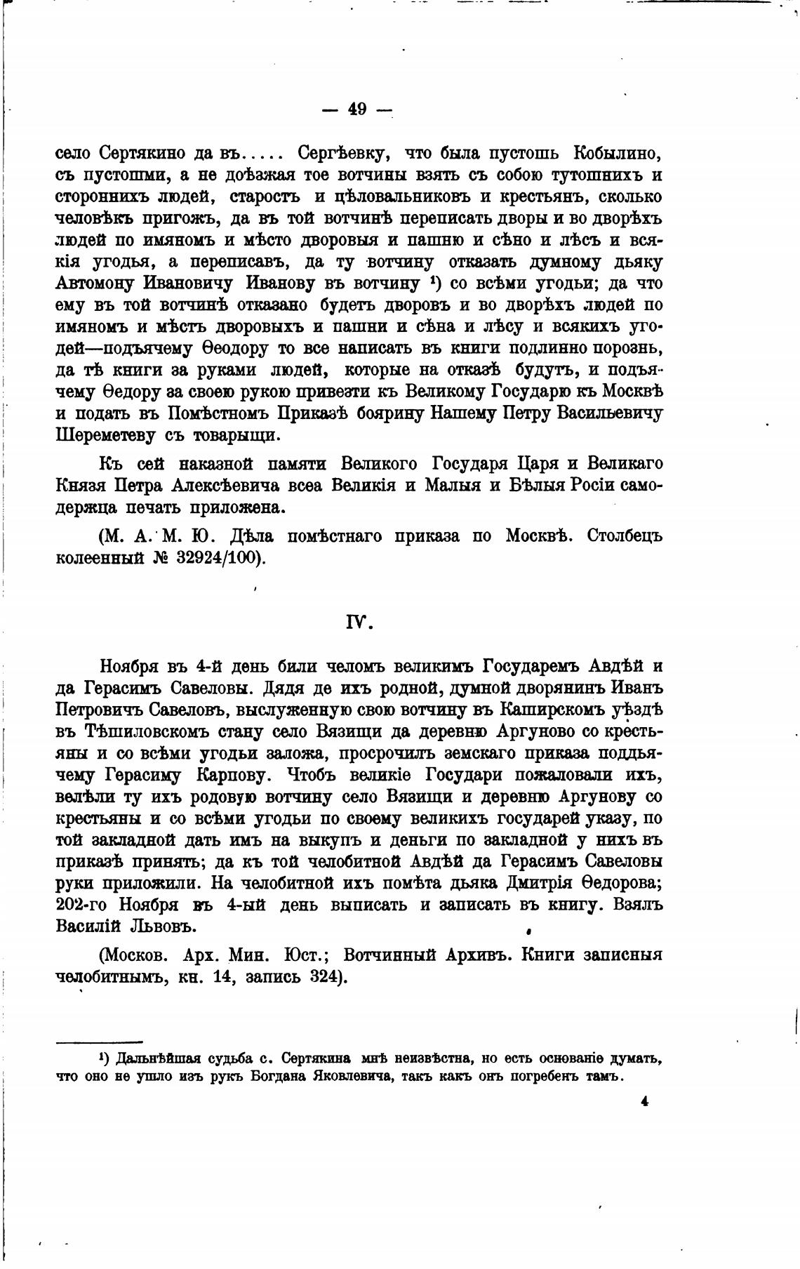 велевли ту ихъ родовую вотчину село Вязищи и деревню Аргунову со