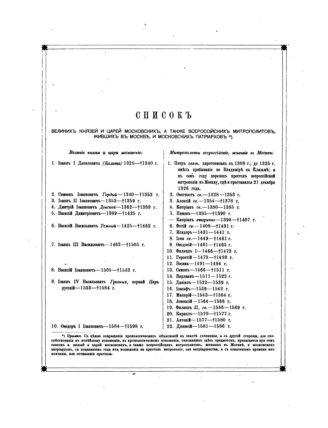 ВЕЛикихъ КНЯЗЕЙ И ЦАРЕЙ МОСКОВСКИХЪ, А ТАКЖЕ ВСЕРОССЙСКИХЪ митрополитовъ,
