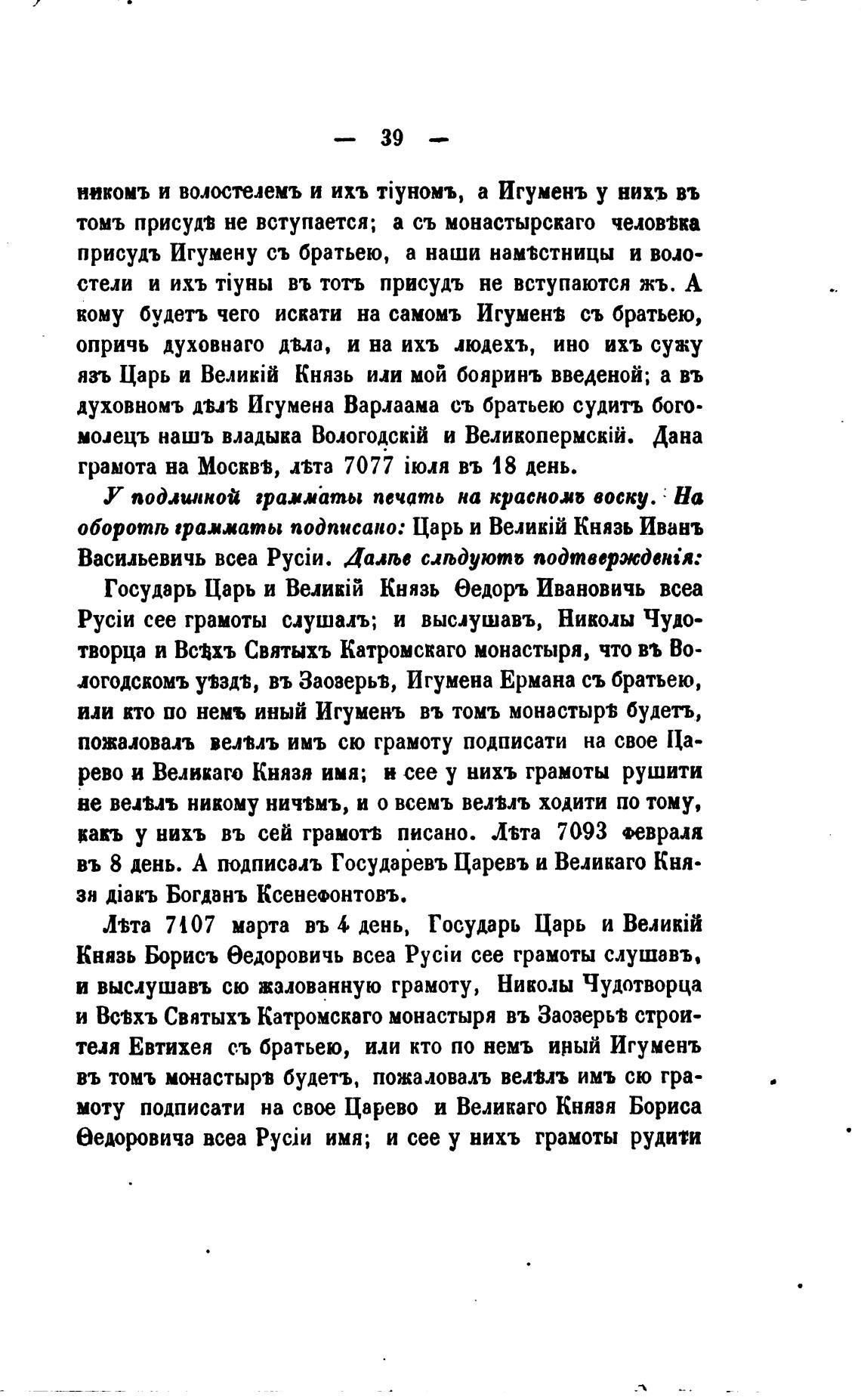 вакъ у нихъ въ сей грамотЁ писано. Лбта 7093
