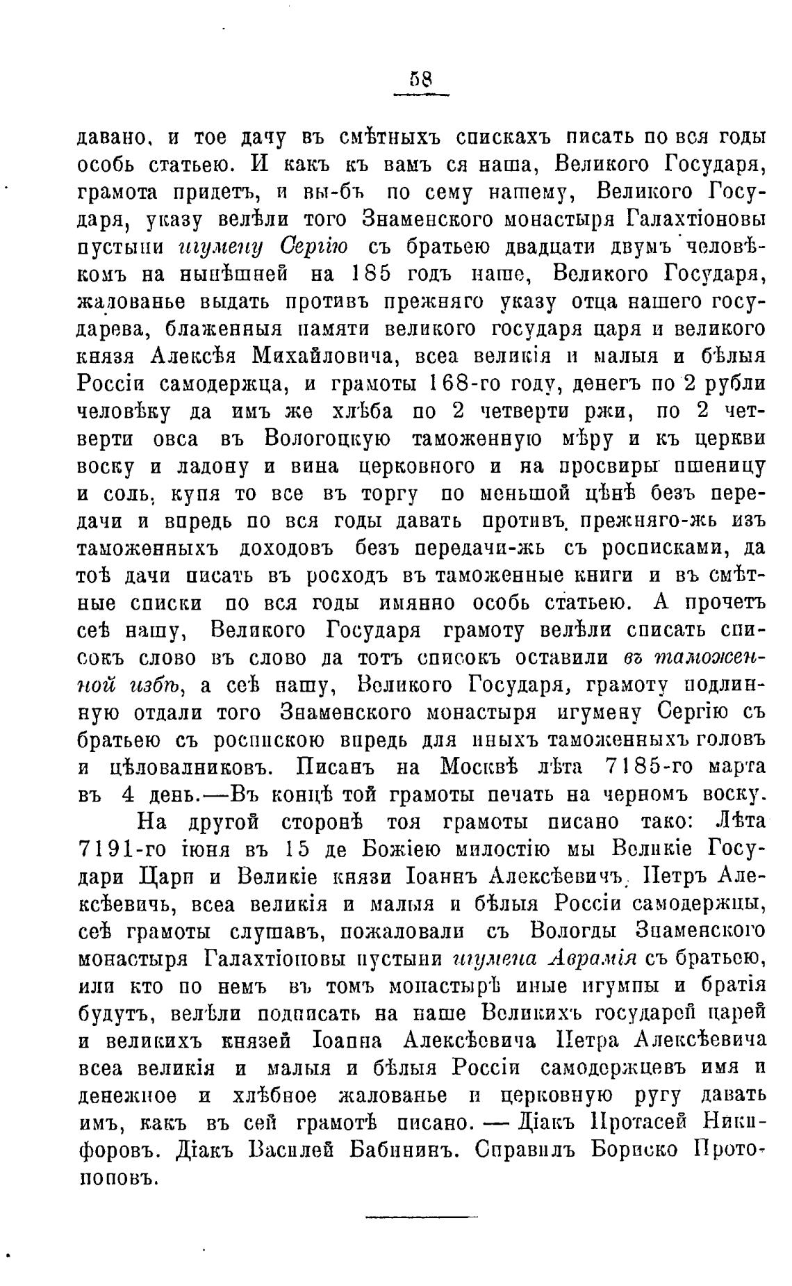сеТ грамоты слушавъ, пожаловали съ Вологды Знаменского