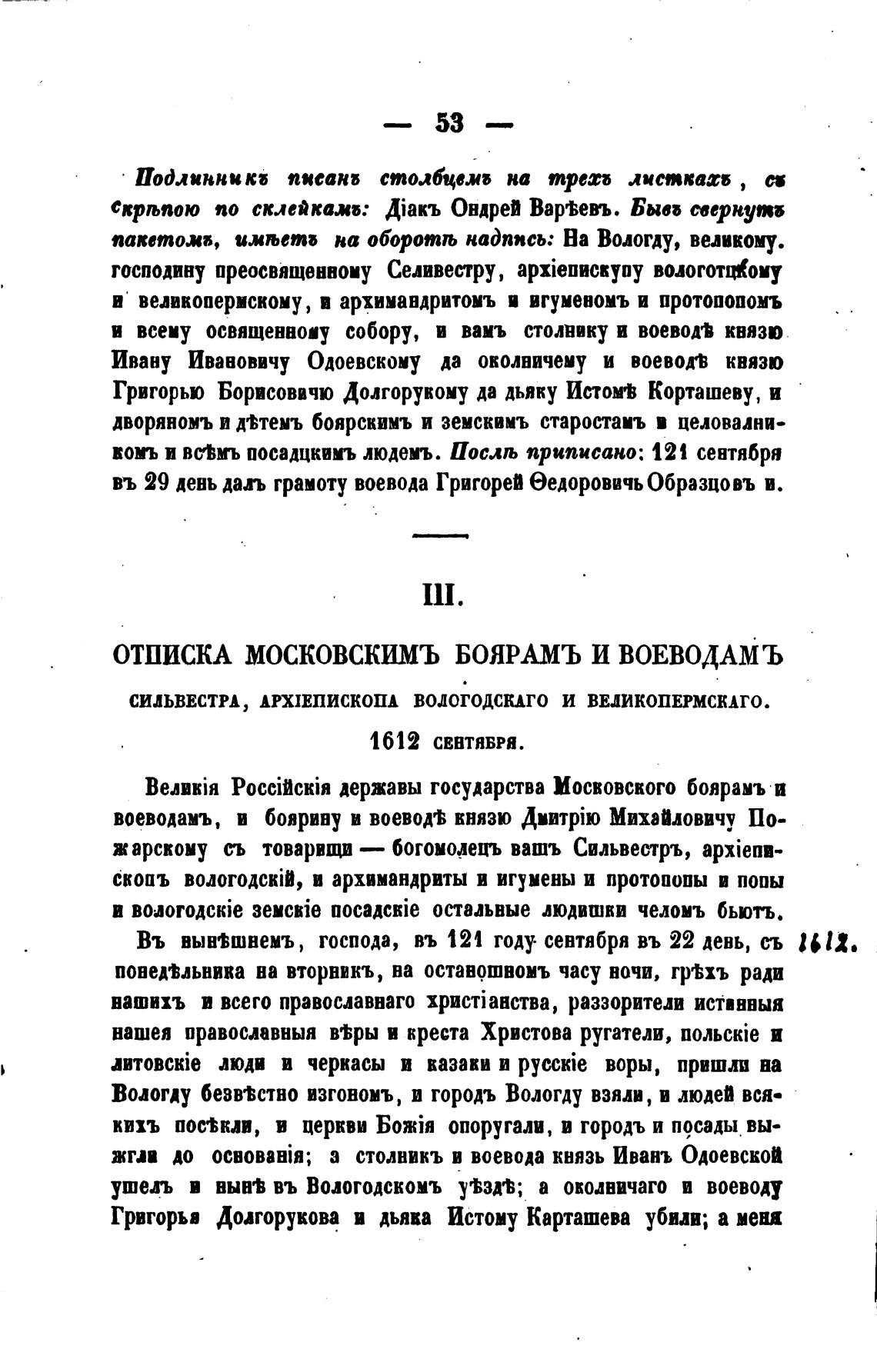 ОТПИСКА МОСКОВСКИМЪ БОЯРАМЪ И ВОЕВОДАМЪ