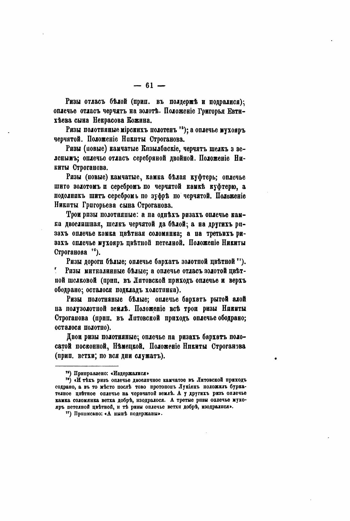 п) «И тЬхъ риаъ оплечье двоипчное камчатое въ Литовской приходъ
