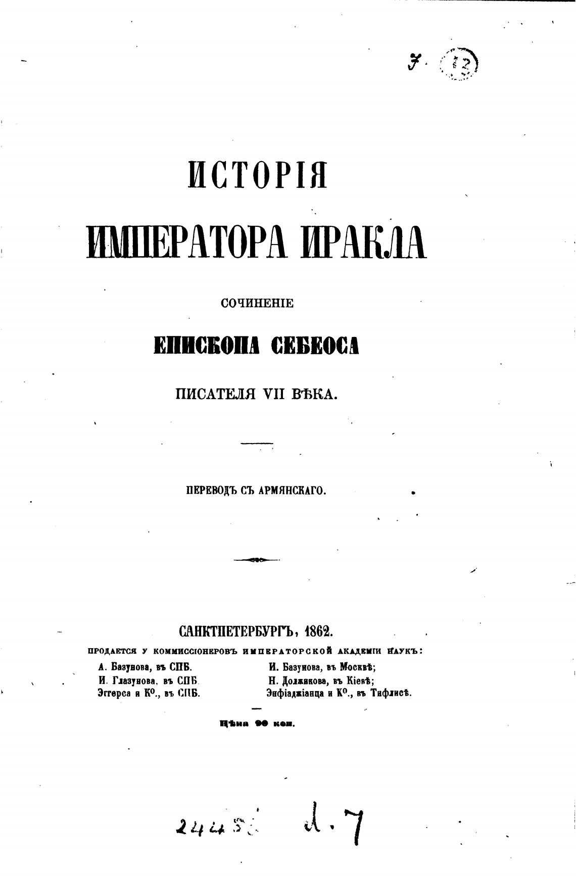 ПРОДАЕТСЯ У КОММИСС[ОНВРОВЪ ИМПЕРАТОРСКОЙ АКАДЕИШ КАУКЪ:
