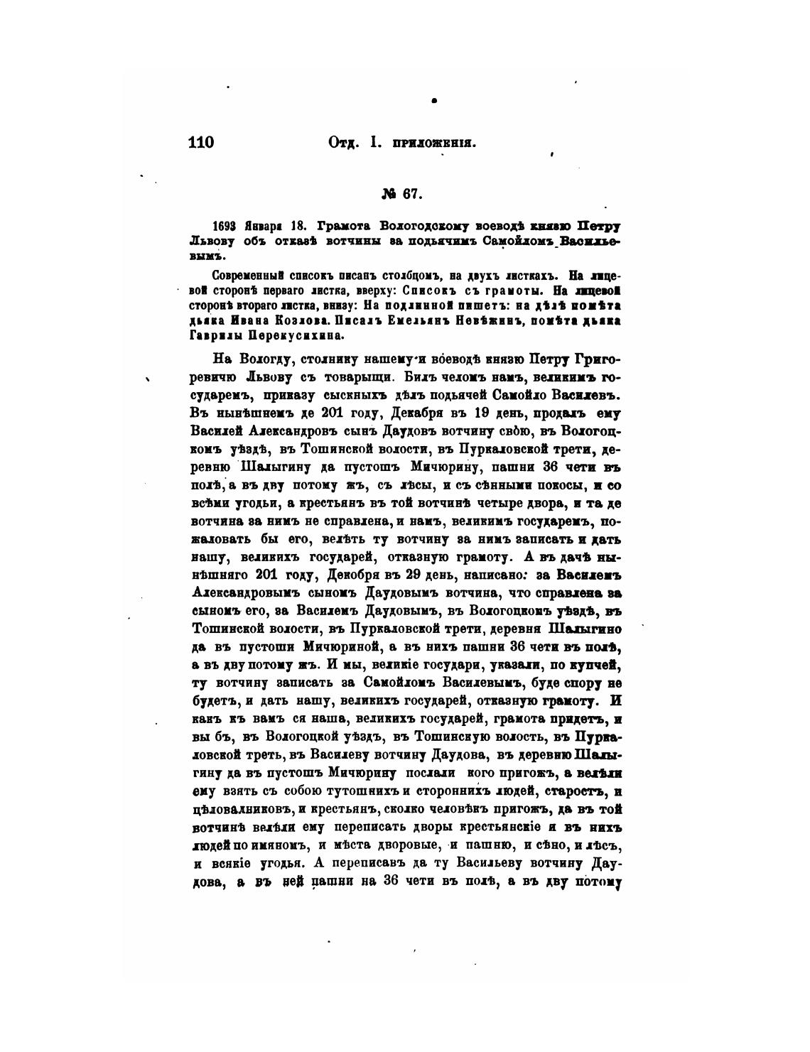 Львову объ отхаз• вотчины ва подьячимъ Самойдомь_Вивхье-