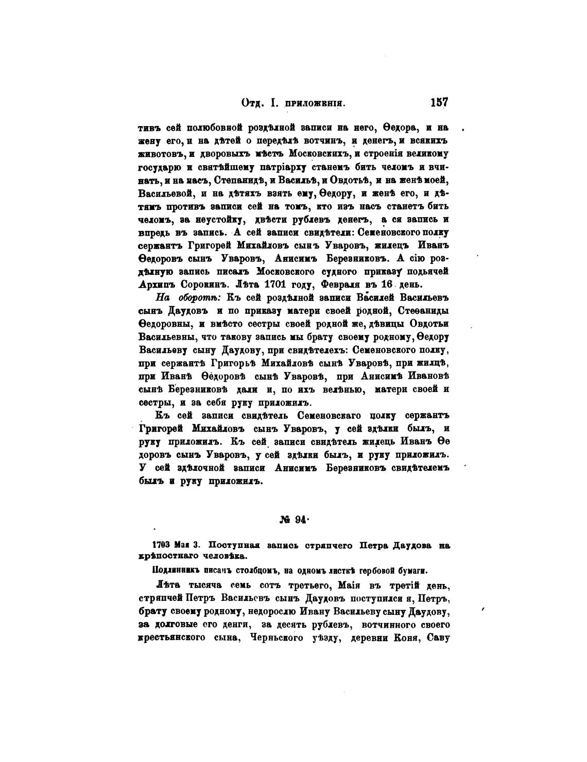 Васильеву сыну Даудову, при свид•телехъ: Семеновского попу ,