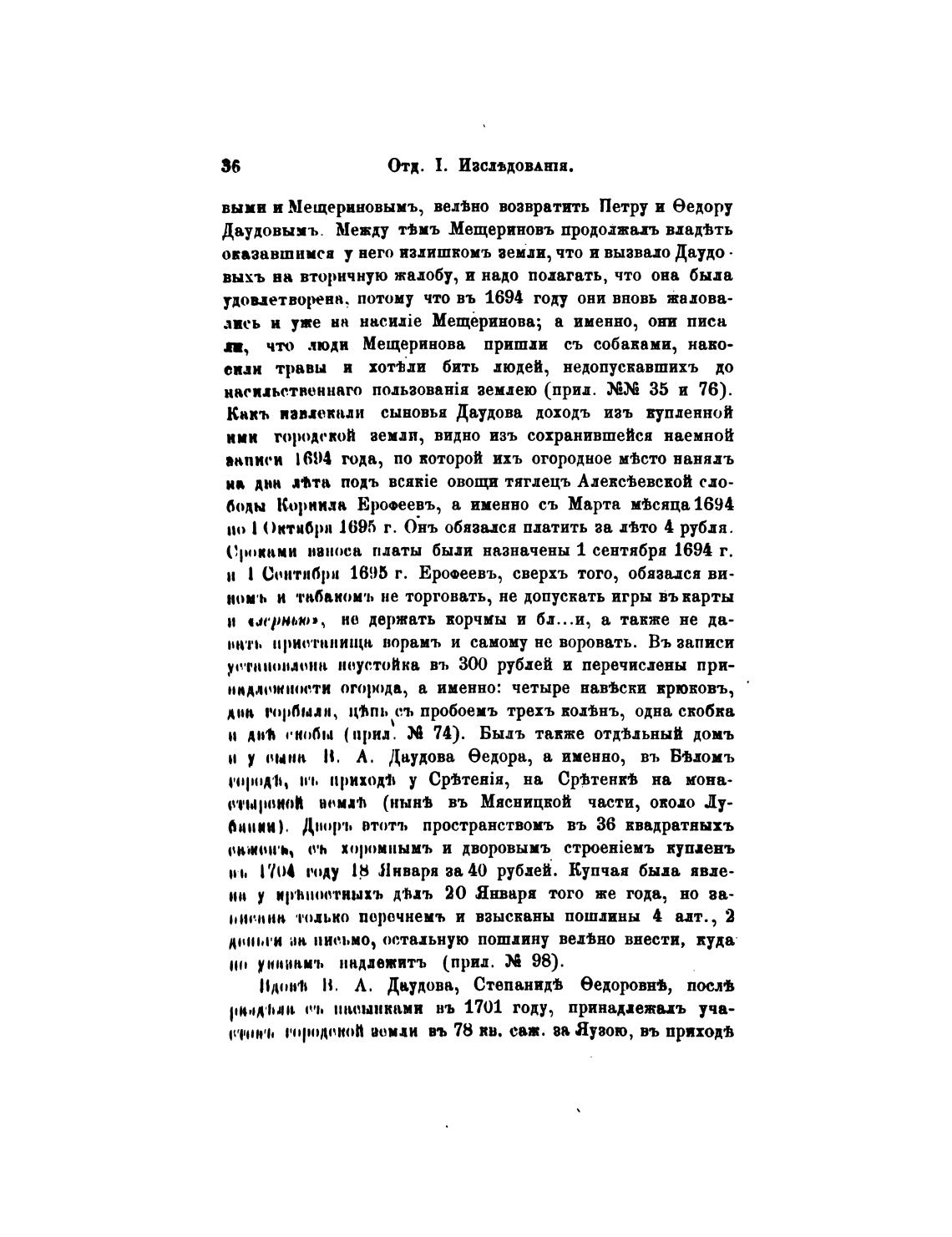 ааписи 1694 года, по которой ихъ огородное М'Ьсто нанялъ