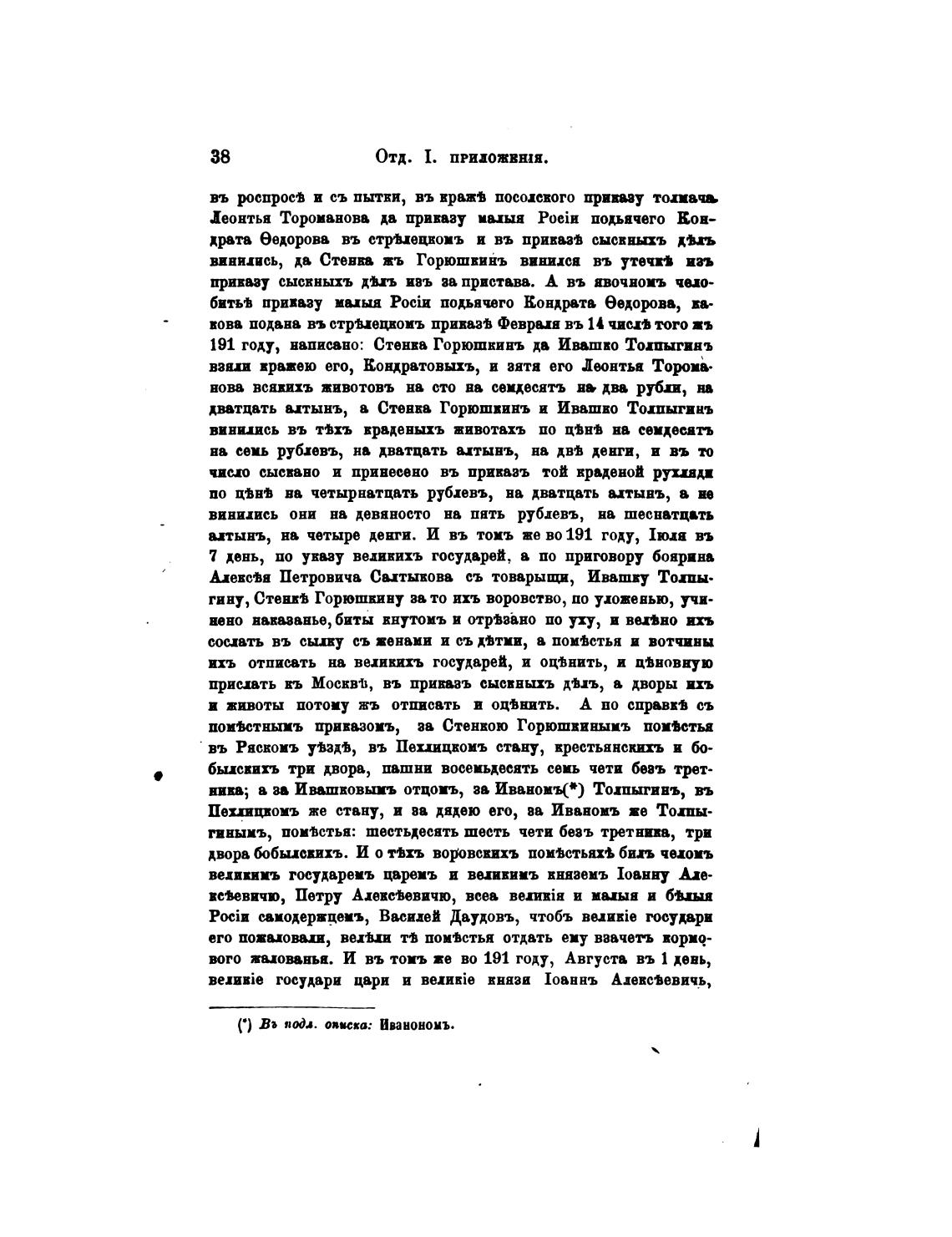 191 году, написано: Стенва Горюшкинъ да Ивашво Толпыгинъ