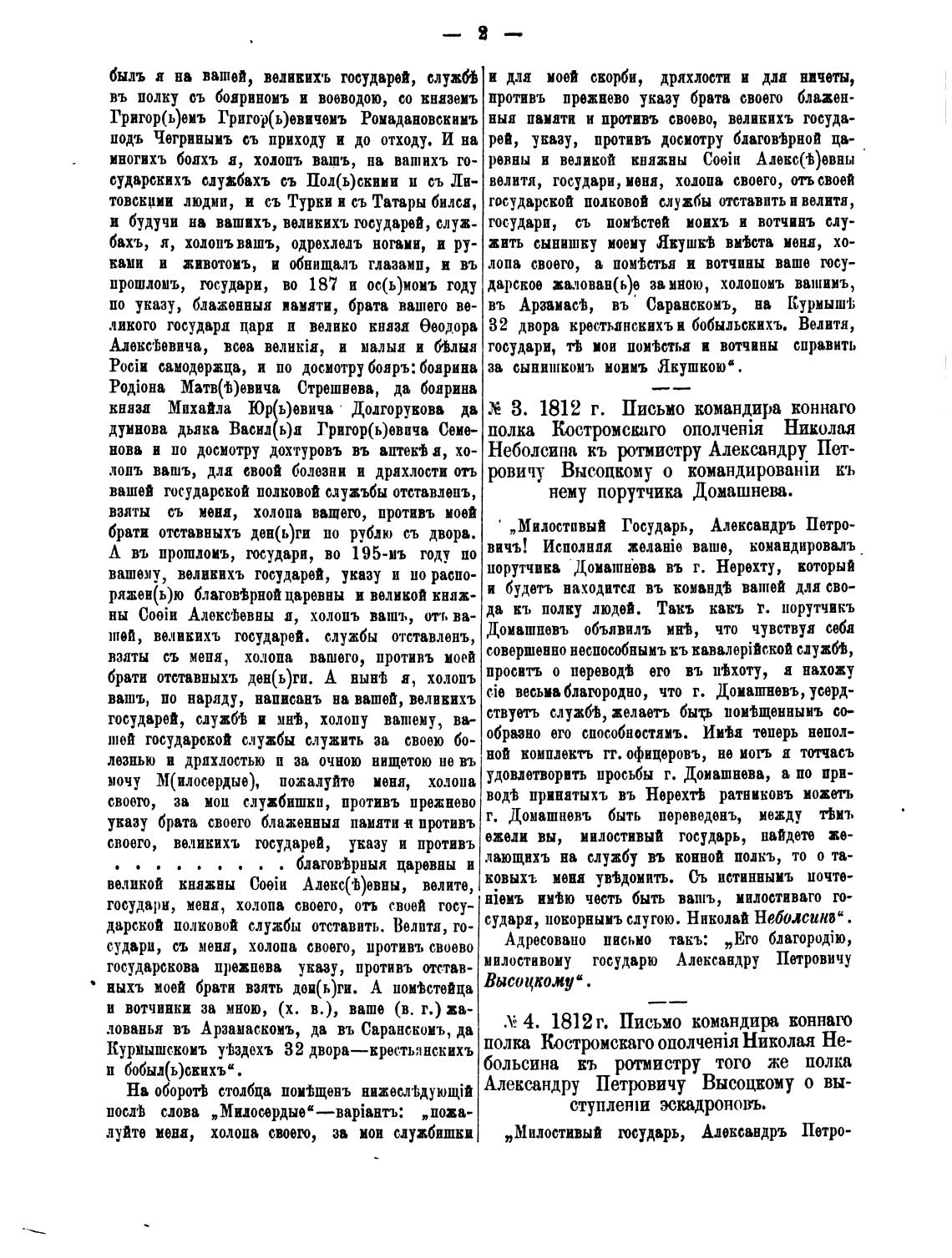 думнова дьяка Васнд Григор(ь)евича Семе- полка Костромскпго Николая