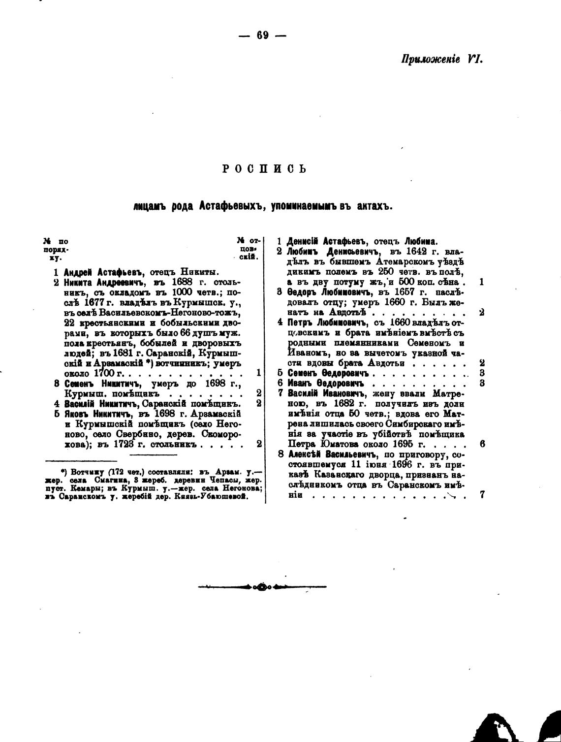пициъ рода Астафьевыхъ, упоиинавиыиъ въ итиъ.