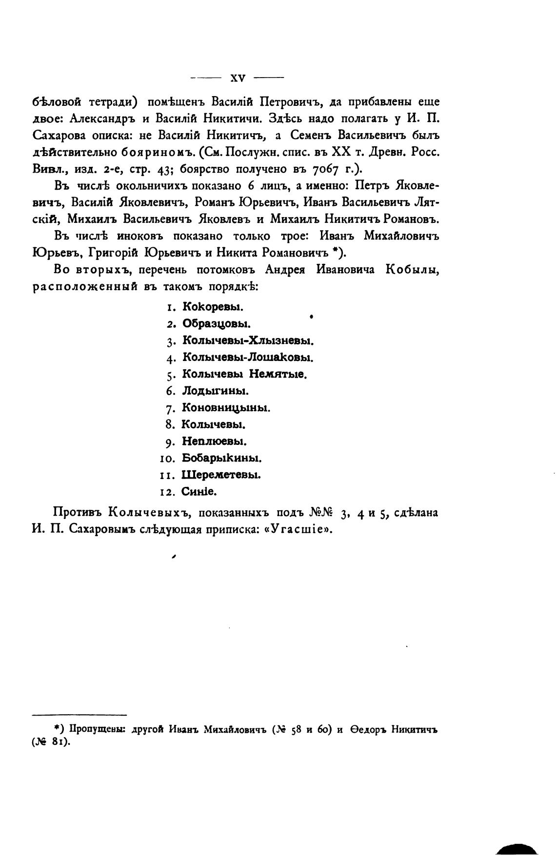 Во вторыхъ, перечень потомковъ Андрея Ивановича Кобылы,
