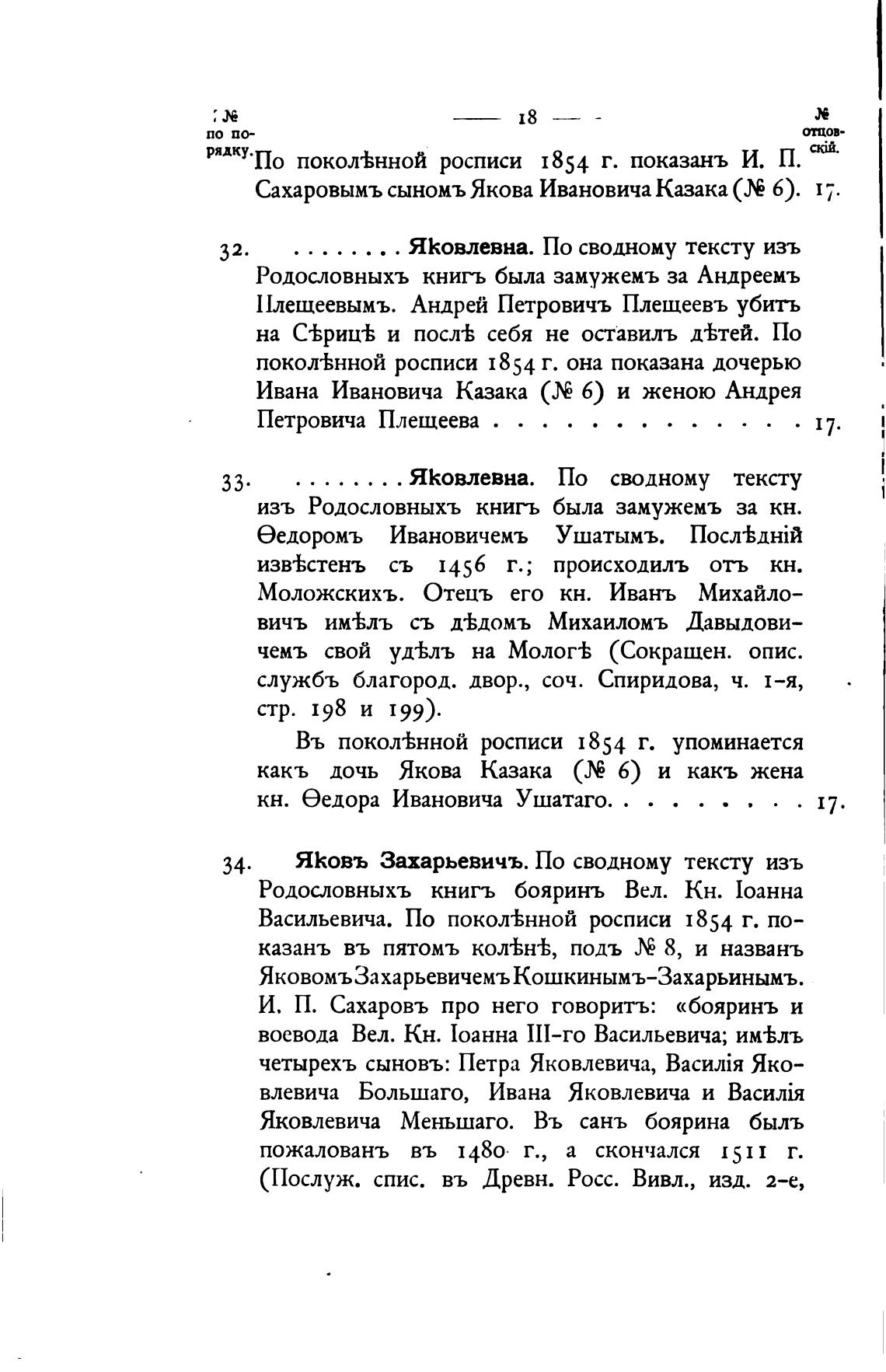 34. ЯКовъ Захарьевичъ. По сводному тексту изъ