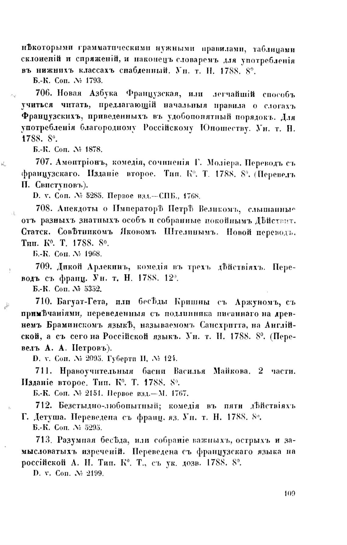 Б.-К. сон. 2151. Первое изд.—м. 1767.