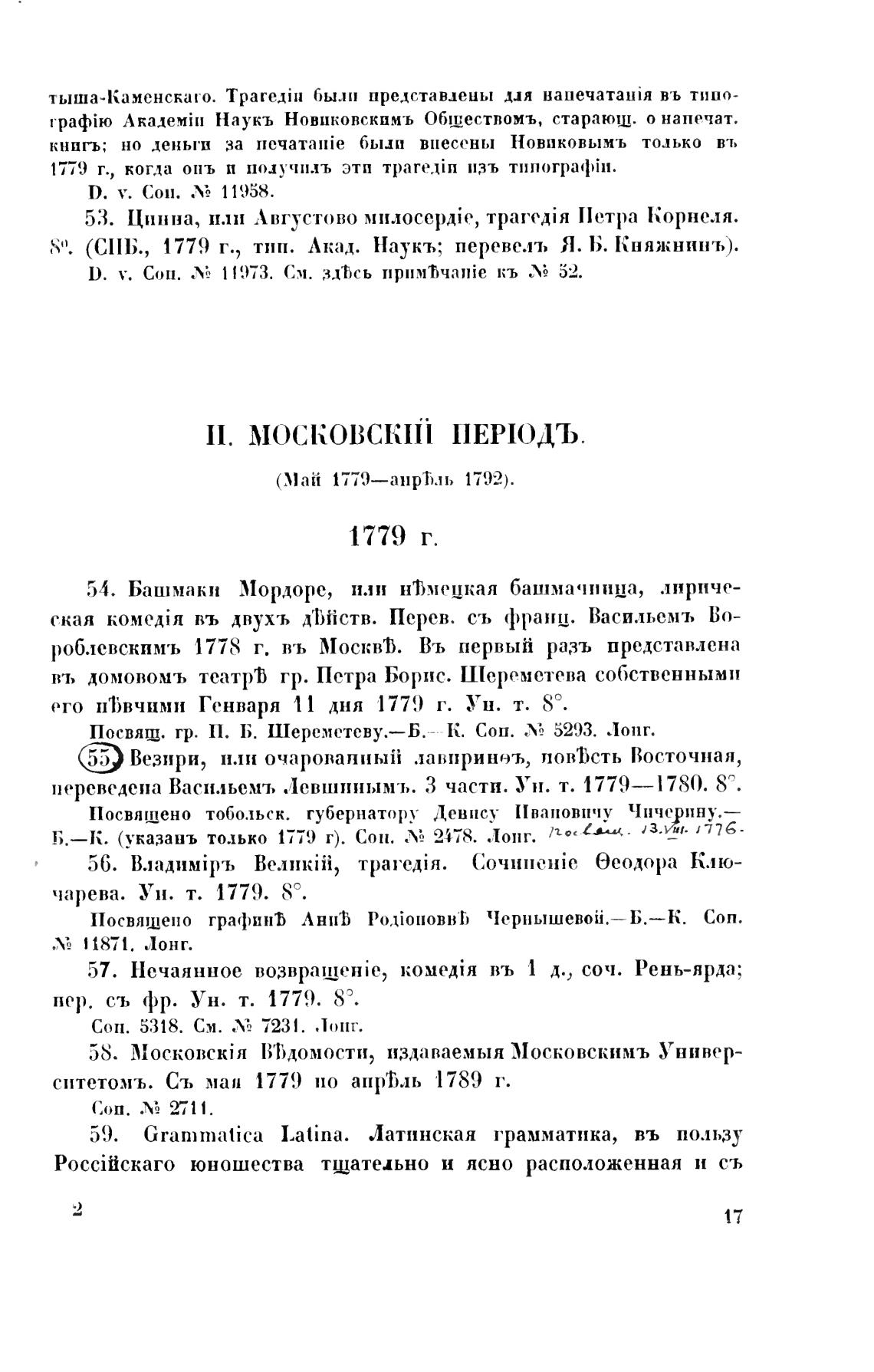 Л.—К. (указань только 1779 г). Сон. .'М 2478. Лонг.