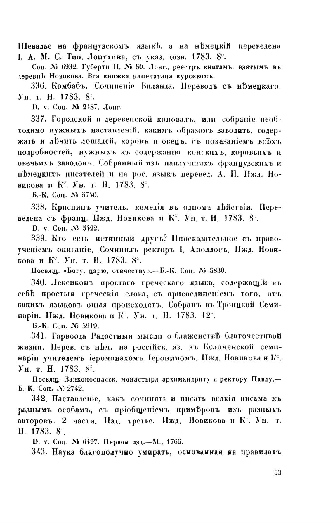 ведена съ франц. Ижд. Новикова и К . У н. т. Н. 1783. 8-