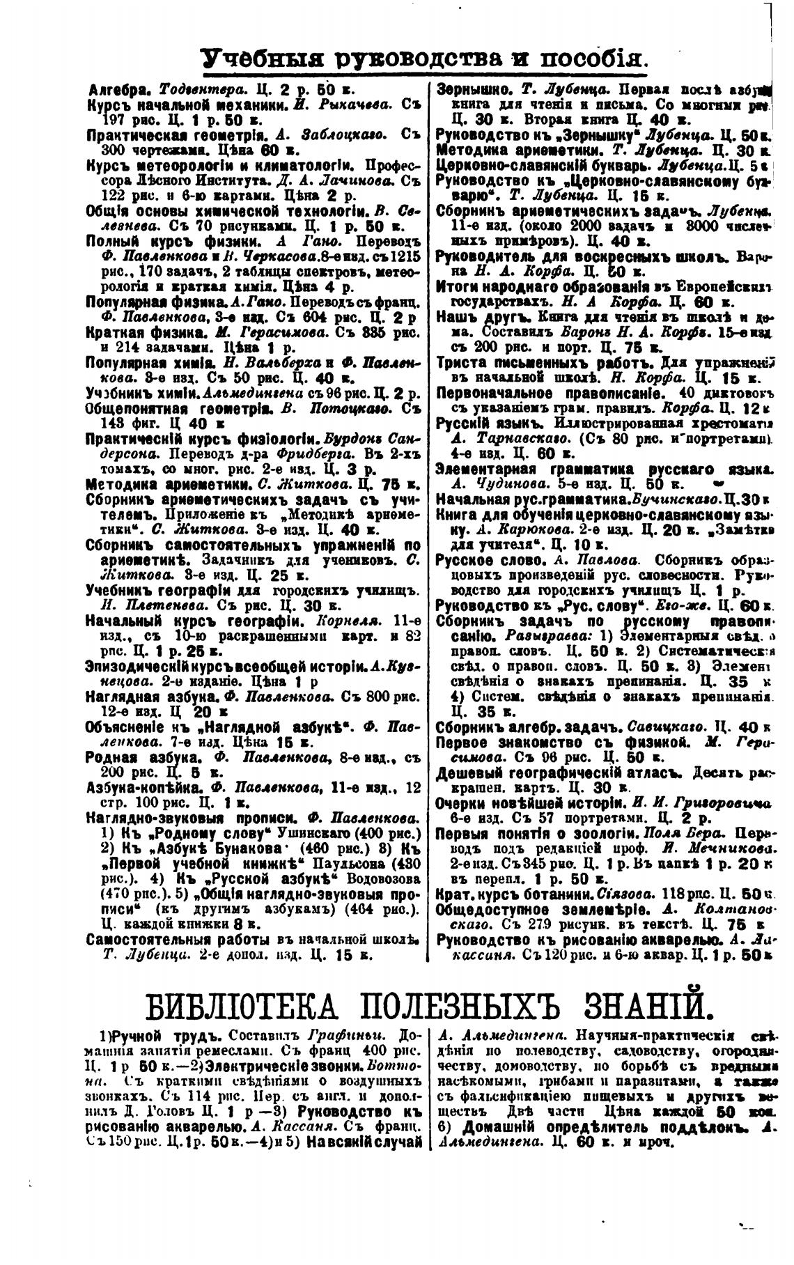 ВИВШОТЕКА ПОЛЕЗНЫХЪ ЗНАЮЙ.