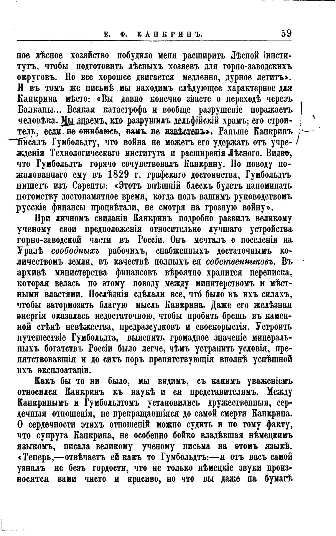 Канкринымъ и Гумбольдтомъ установились дружественныя, сер-