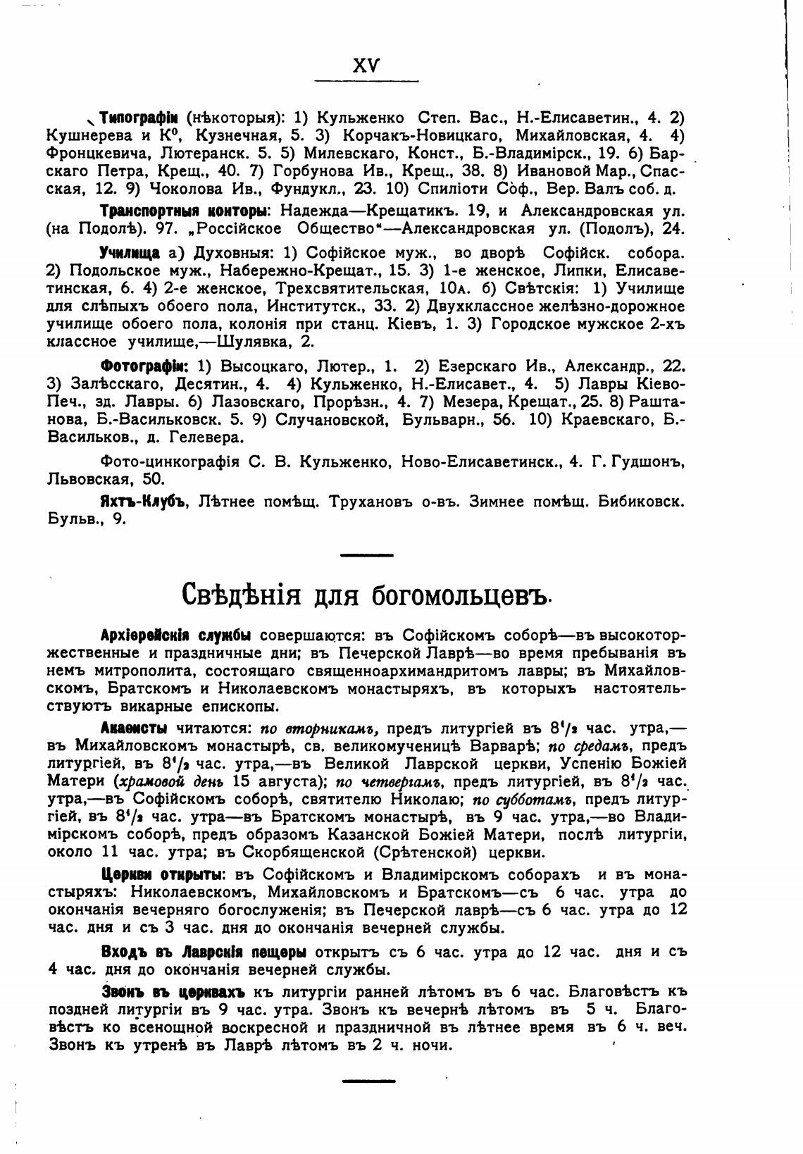 2) Подольское муж. , Набережно-Крещат., 15. З) 1-е женское, Липки, Елисаве-