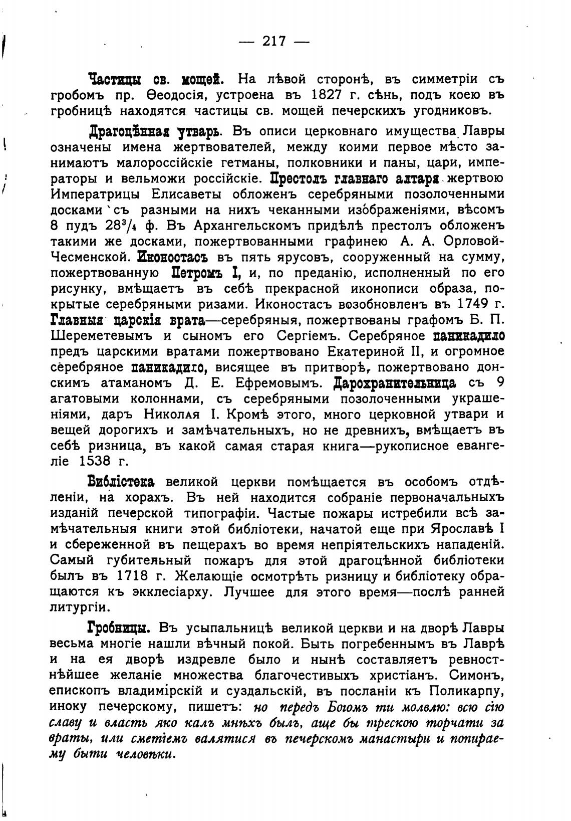 гробниц% находятся частицы св. мощей печерскихъ угодниковъ.
