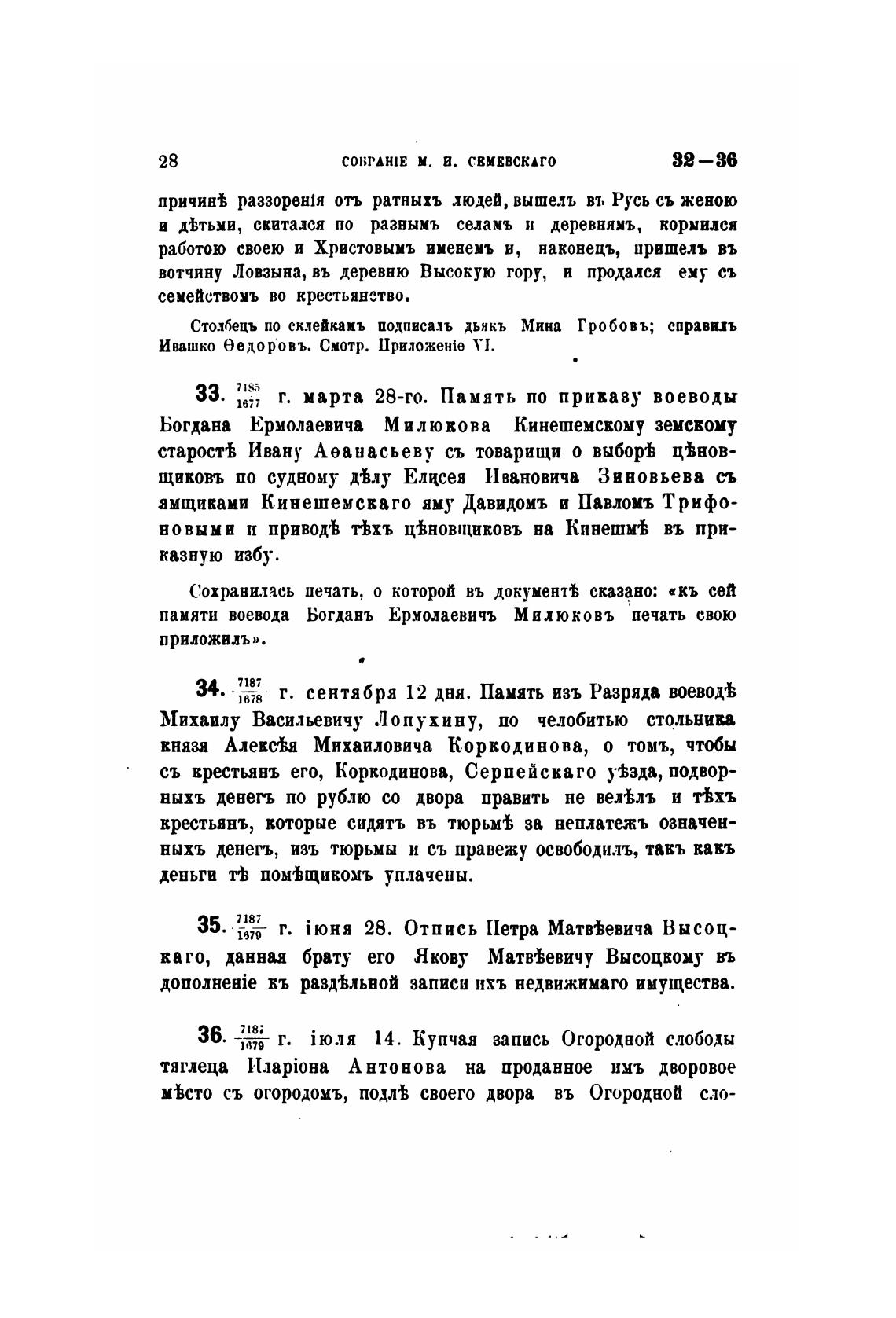 Столбецъ по склейкапъ подпвсалъ дьякъ Мина Гробовъ; еправиъ