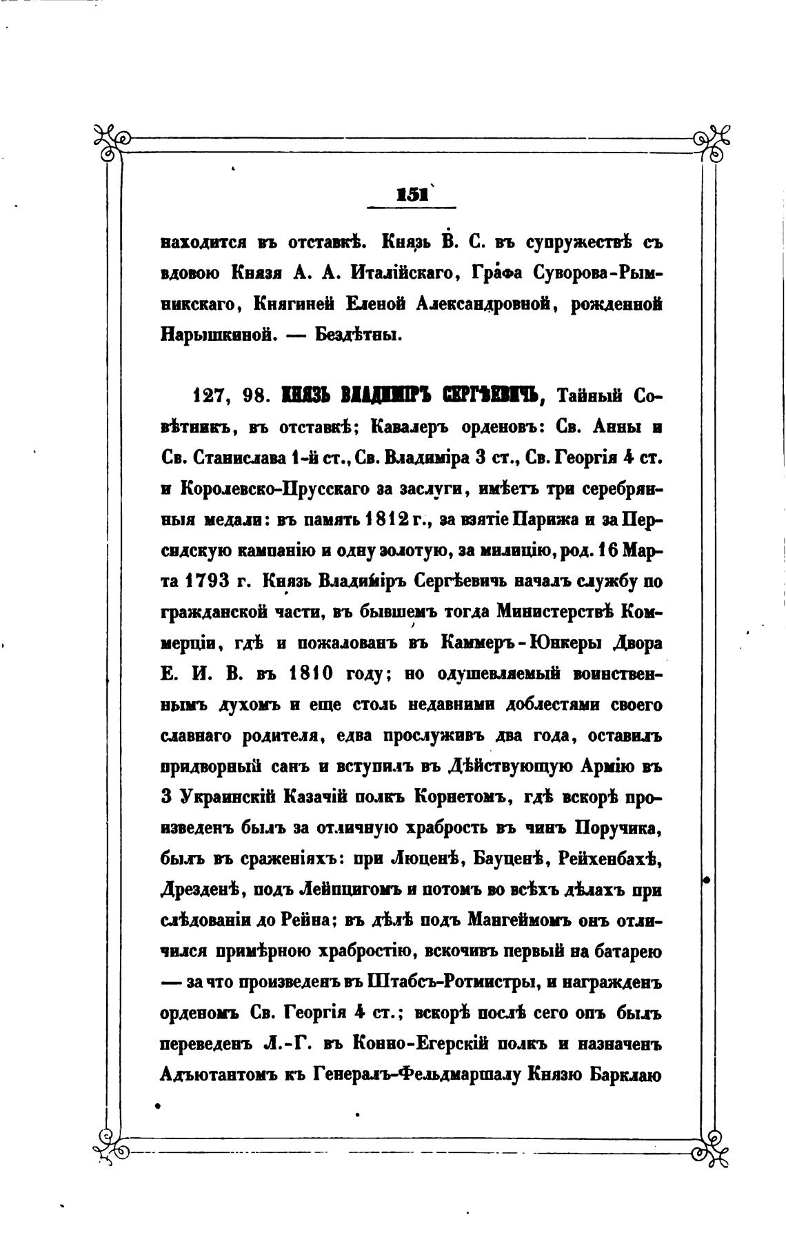 ваходится въ отстать. Кнцзь В. С. въ супружеств съ