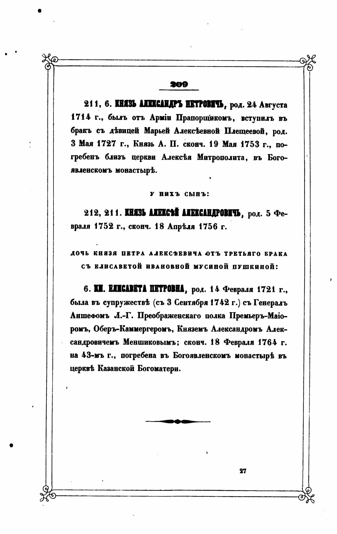 сандровичемъ Меншиковымъ; сконч. 18 Февраля 1764 г.