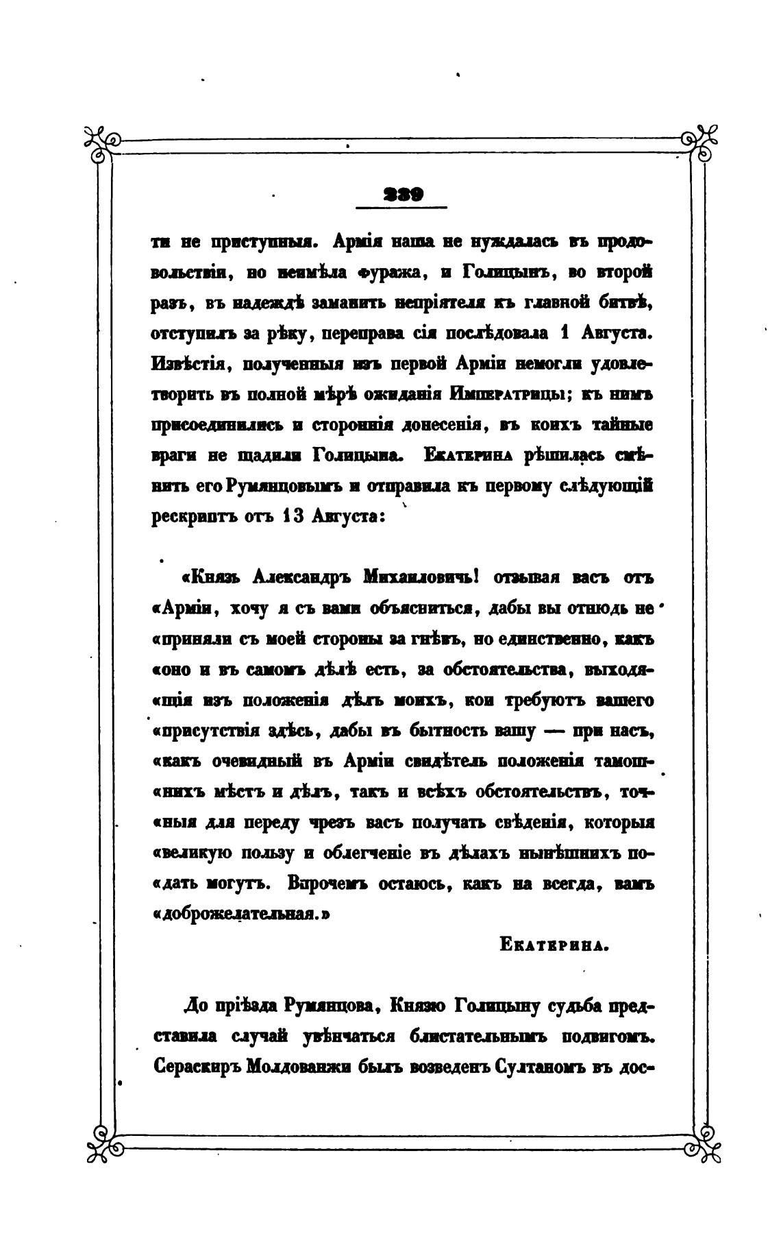 До npibn Румянцова, Княт Голицыну сум пред-
