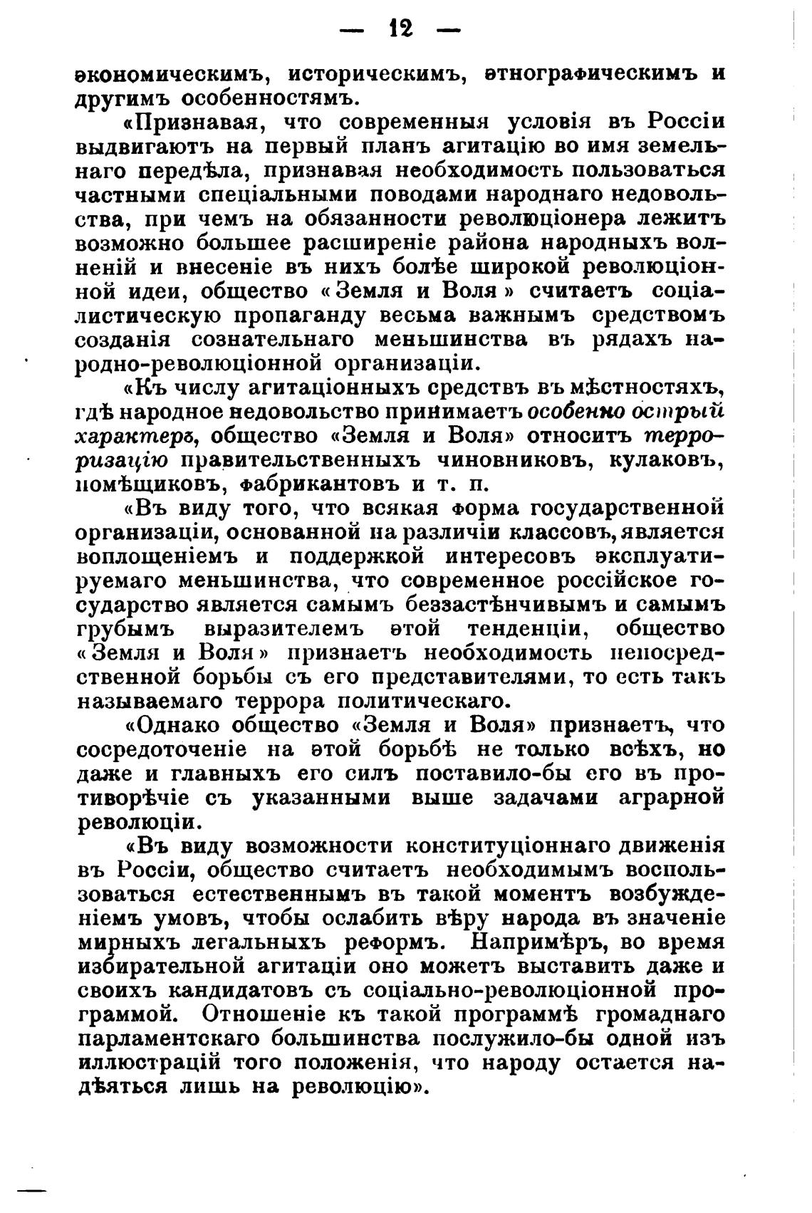 « Земля и Воля» признаетъ необходимость непосред-