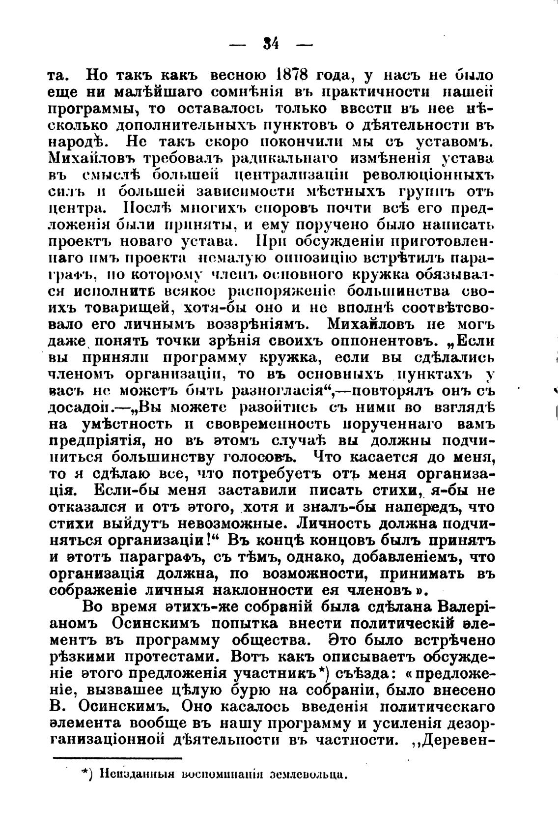 * ) Неизданныя воспоминани1 землевольца.