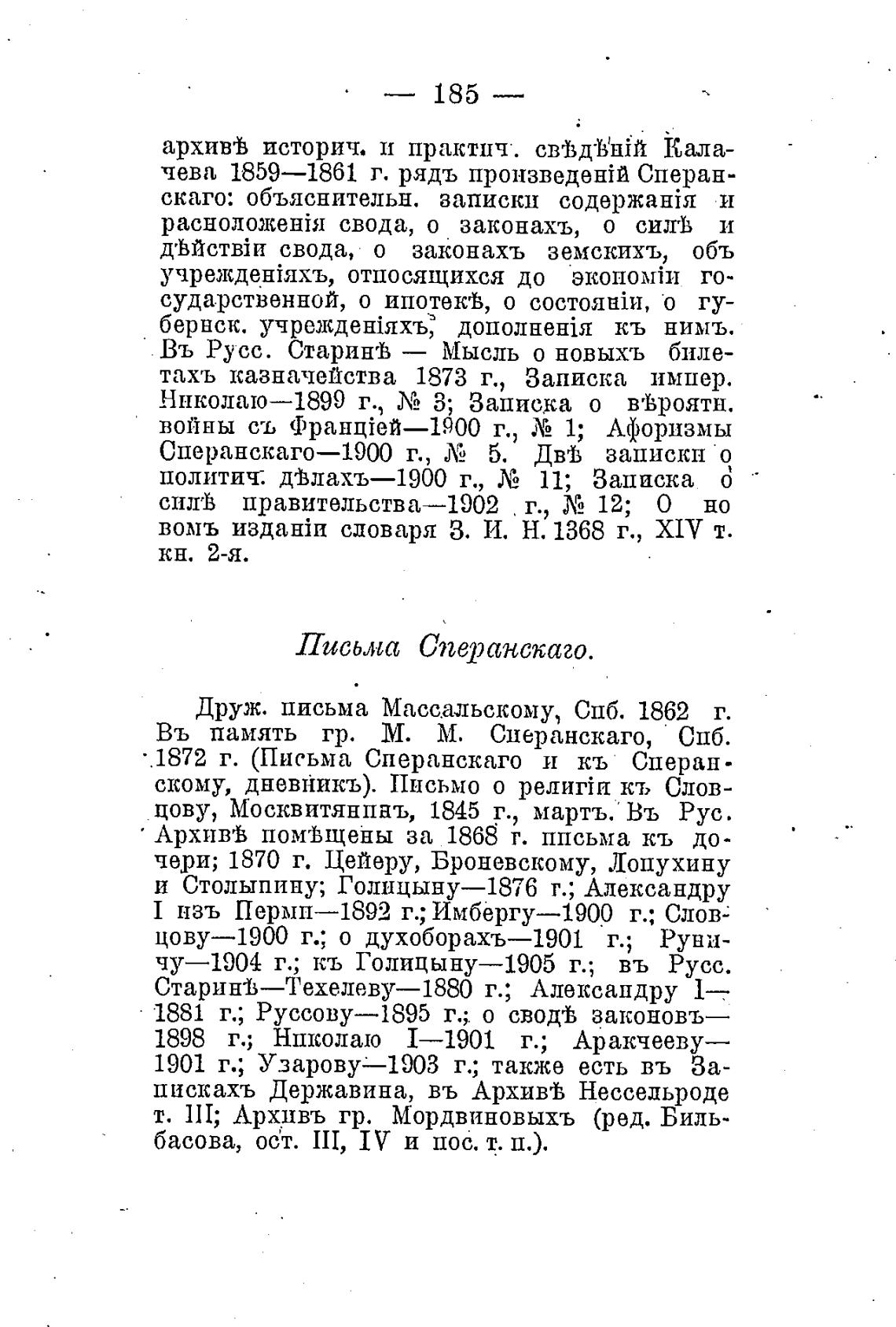 • 1872 г. (Письма Сперанскаго и кь Сперан-