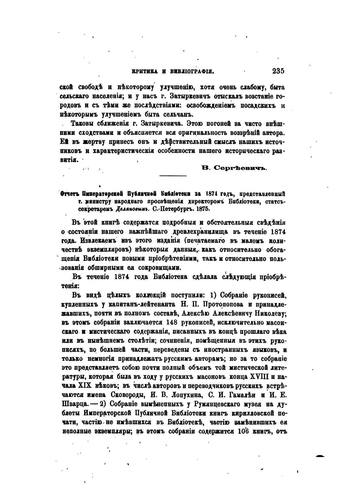 Въ 1874 года ВТот•ека схвлала схђдуоп.$а npi06pi-
