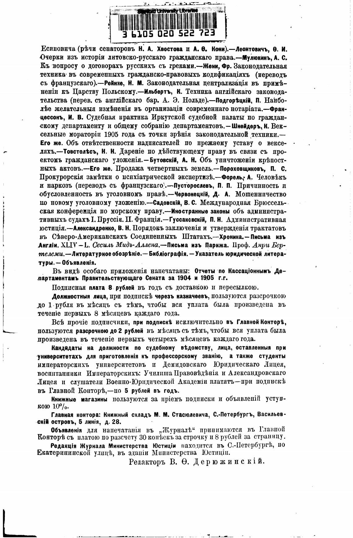 Редакторъ В. е. Дерюжи н с ki й.