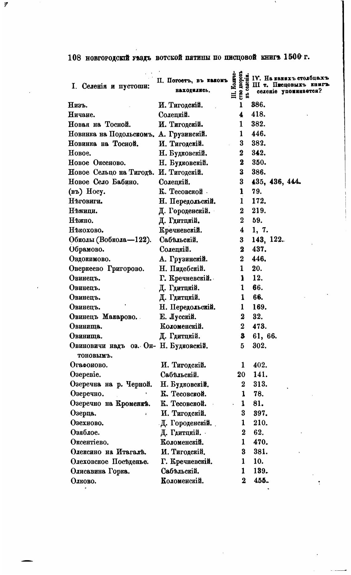 108 новгородсюЙ пздъ вотской патины по писцовой 1500 г.
