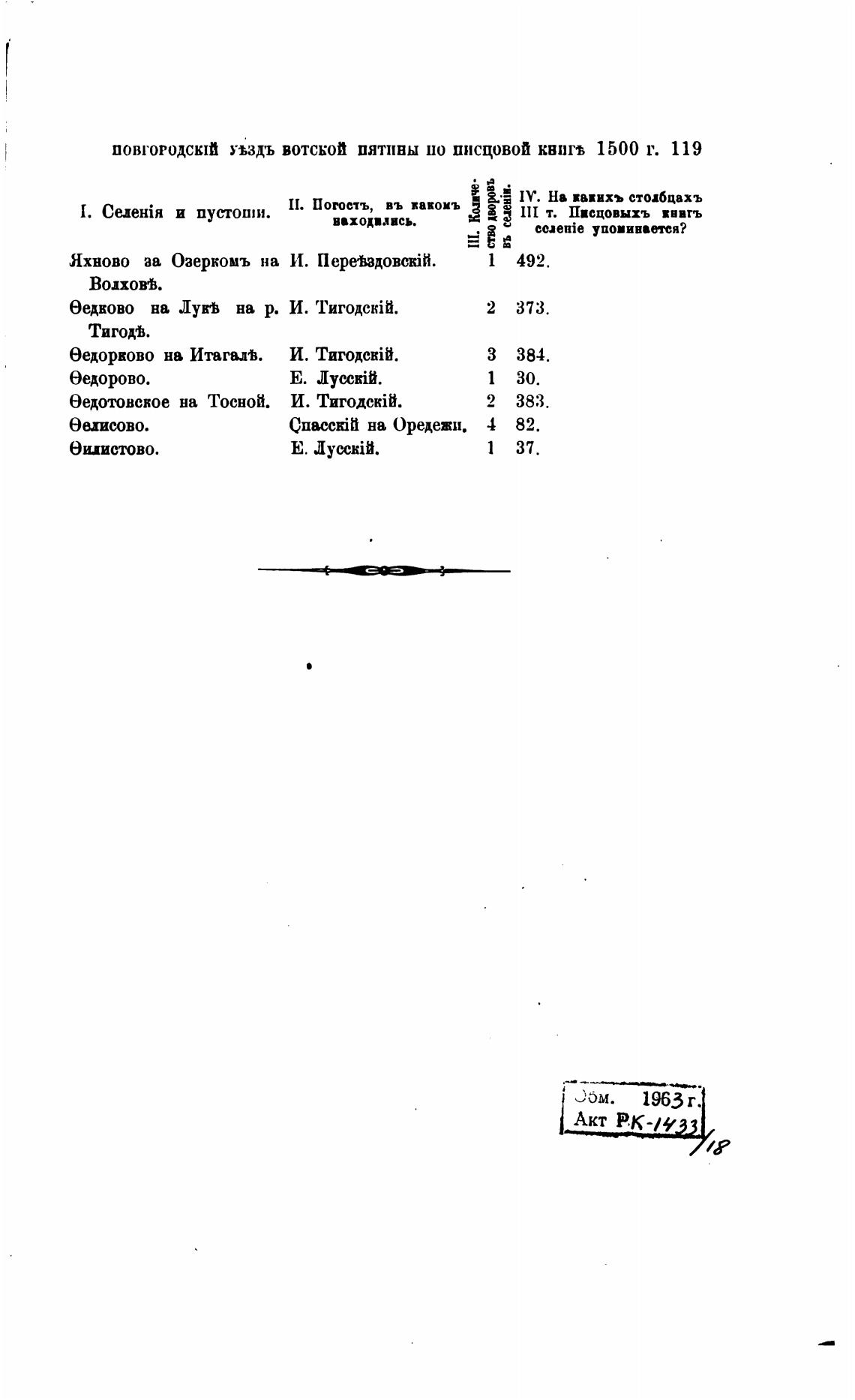 повтородсктй УЫДЪ вотской пятивы по писцовой квин 1500 Г. 119